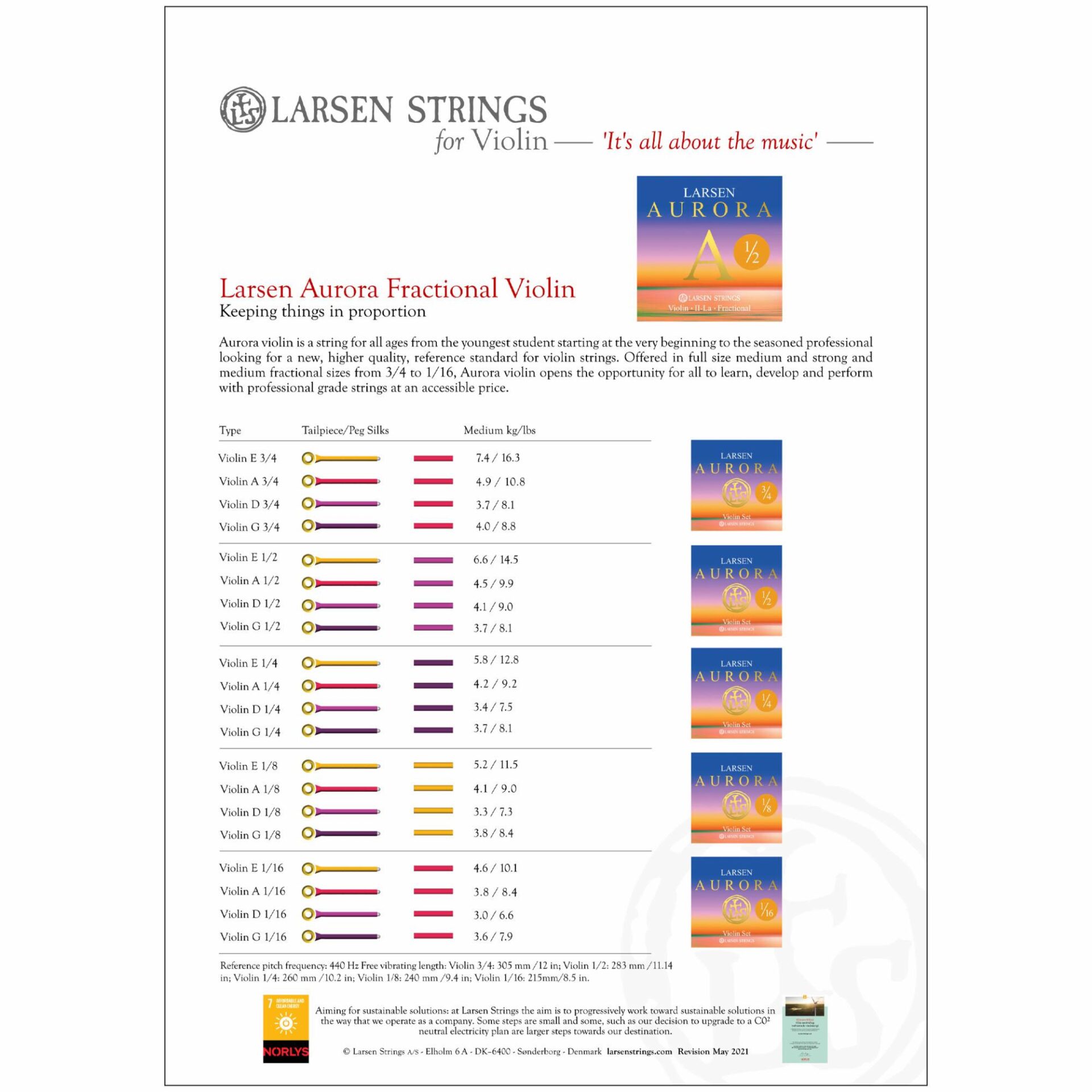 Aurora Fractional: purpose designed, perfectly proportioned versions of our full size Aurora offering quality strings for smaller instruments.”
