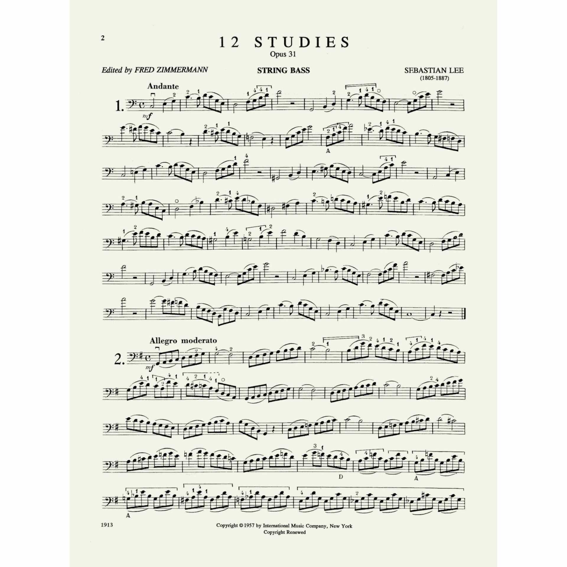 Lee — 12 Studies, Op. 31 for Bass