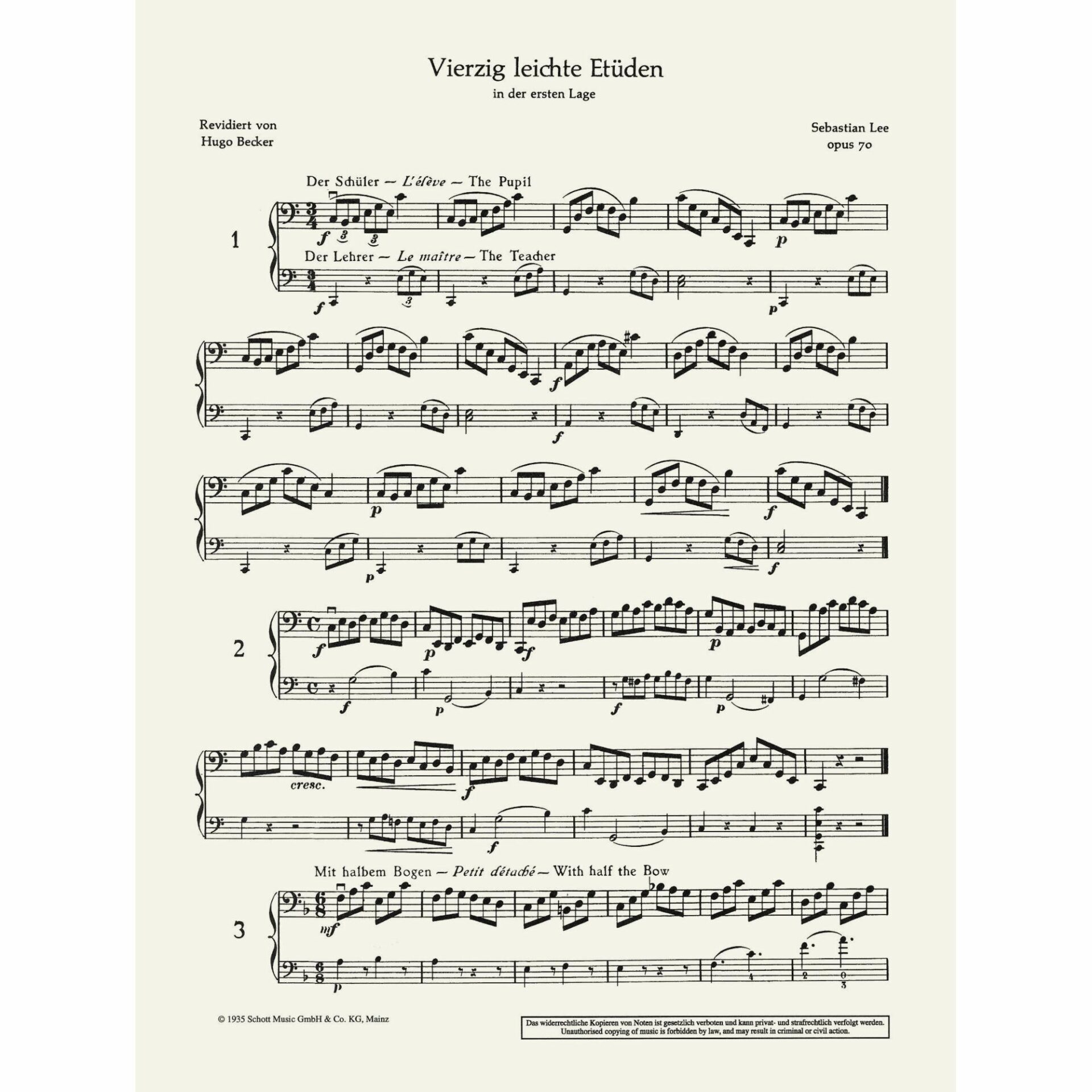 Lee — 40 Easy Studies, Op. 70 for Two Cellos