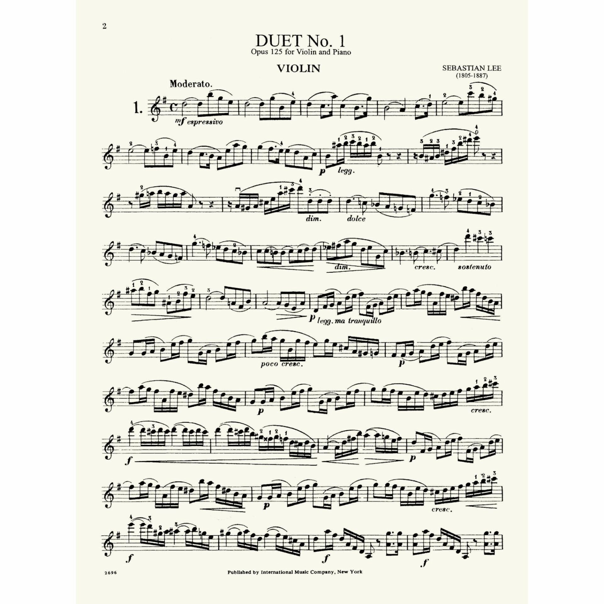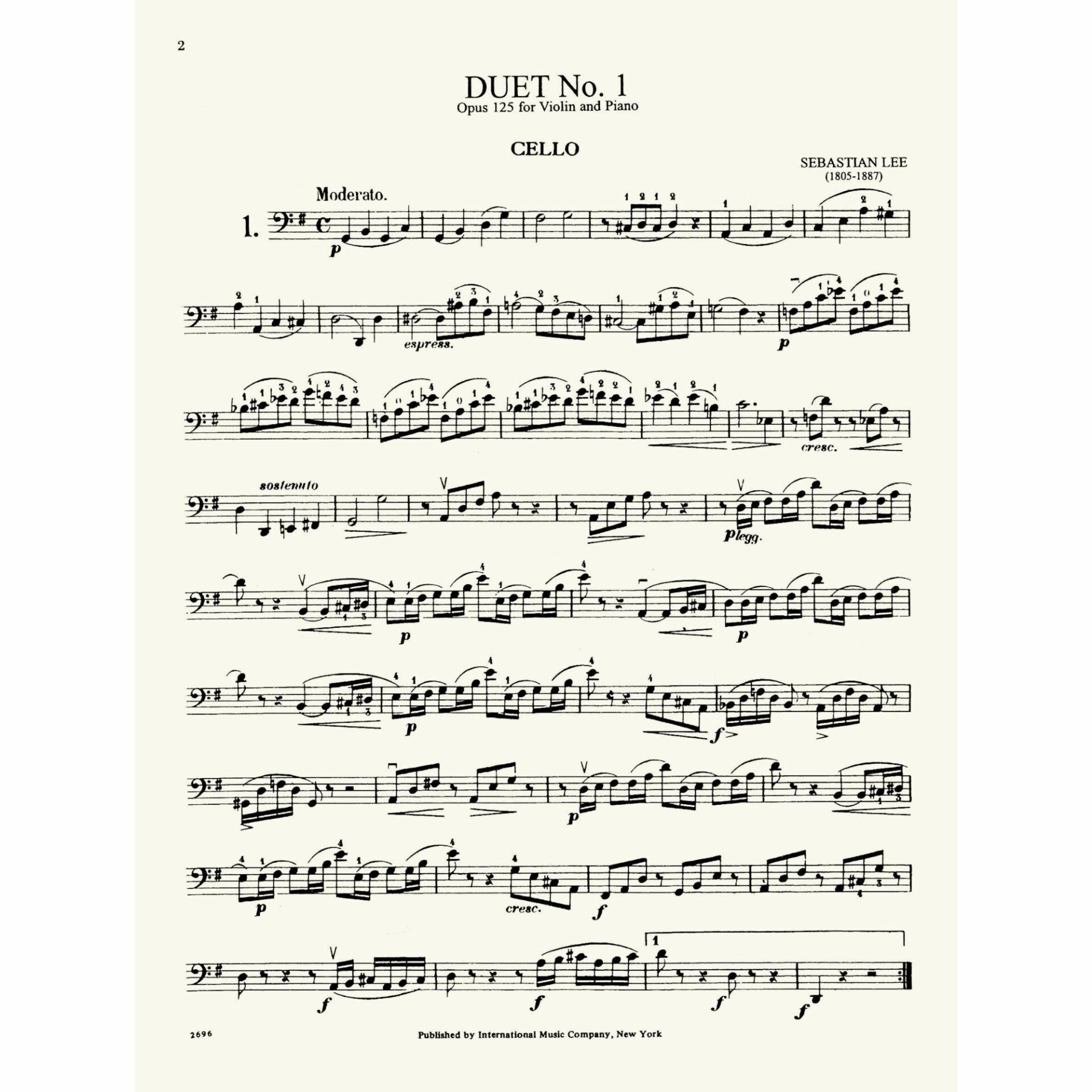 Lee — Duet No. 1, Op. 125 for Violin and Cello
