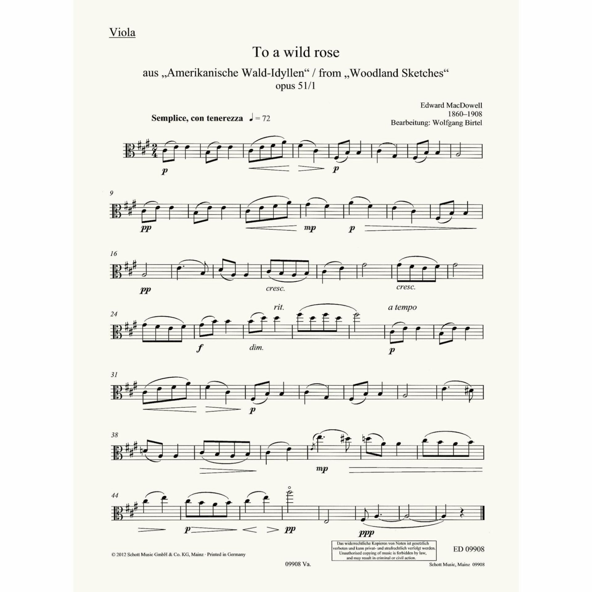 MacDowell — To a Wild Rose, Op. 51/1 for Viola and Piano
