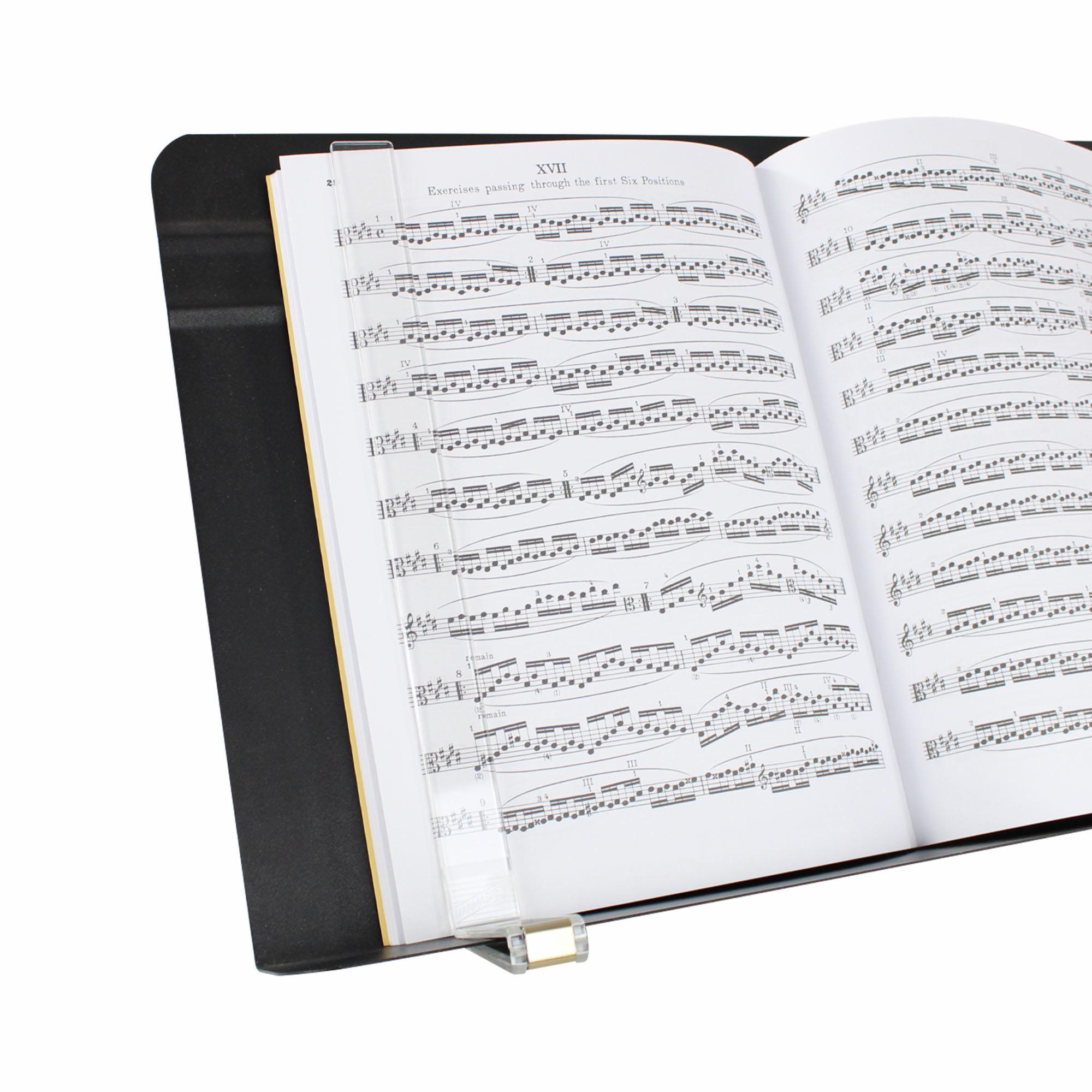 The Manhasset acrylic music clip is back. Easily clips onto the lip of the music stand and has an overall length of 12″.