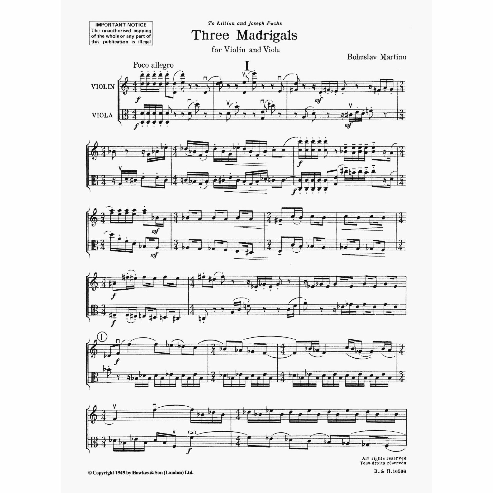 Martinu — Three Madrigals for Violin and Viola