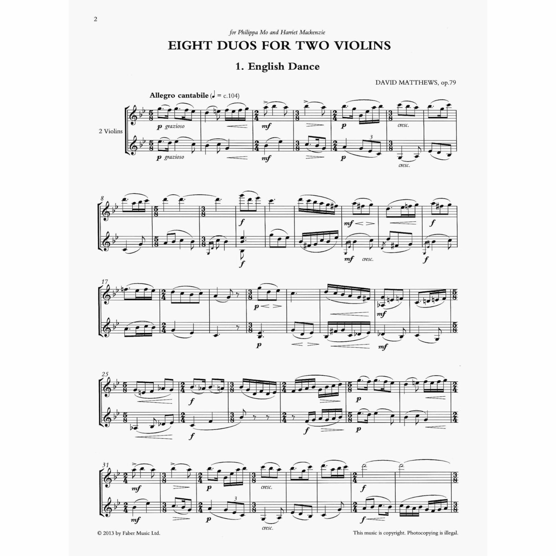 Instrumentation: 2 Violins