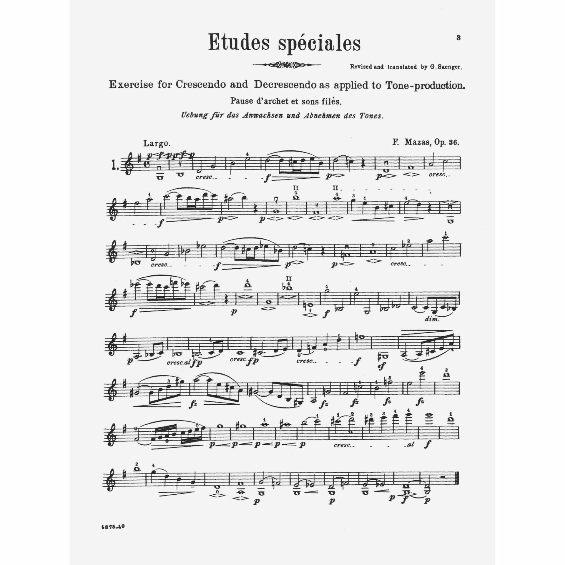 Title: Seventy-Five Melodious and Progressive Studies, Op. 36, Book 1 (Etudes speciales)