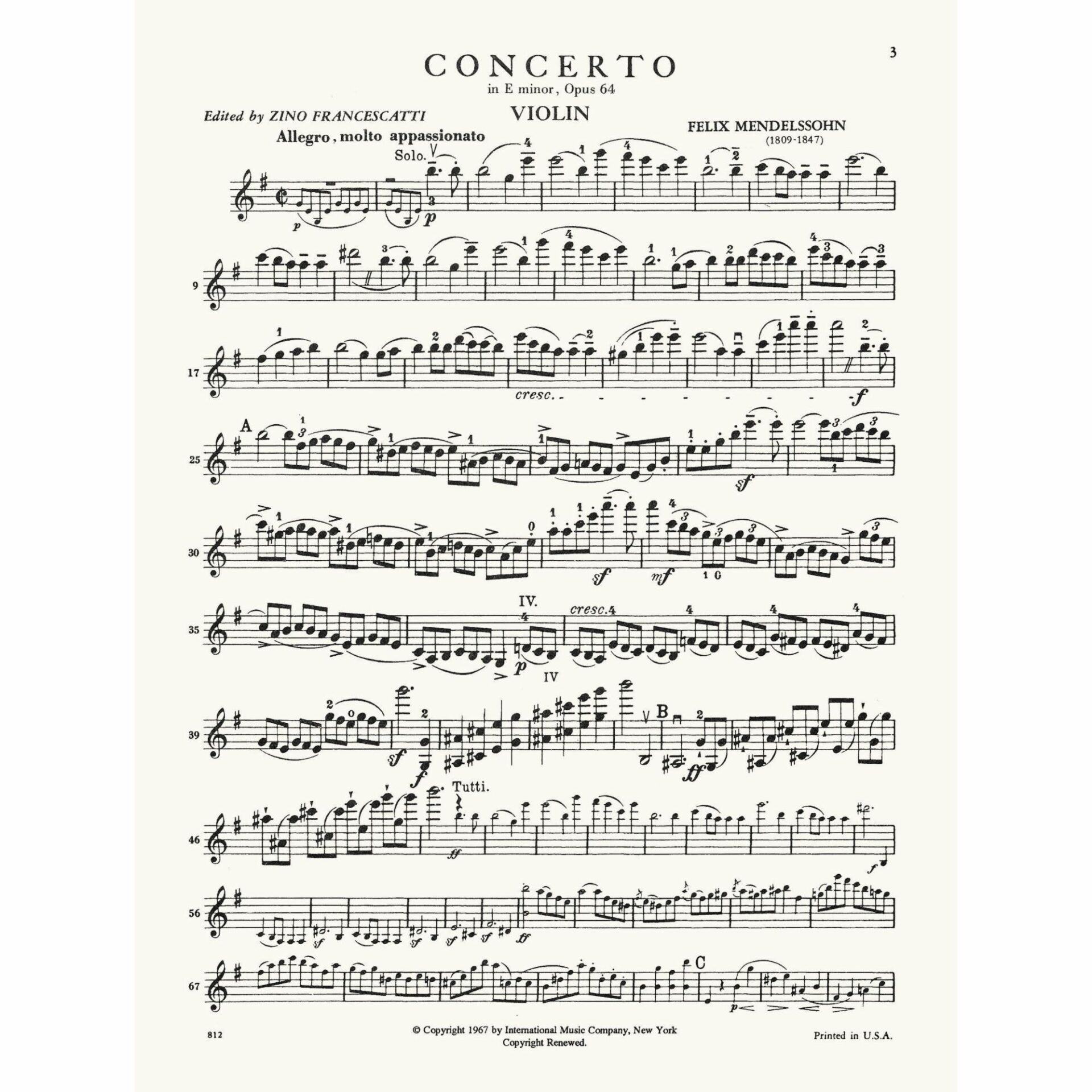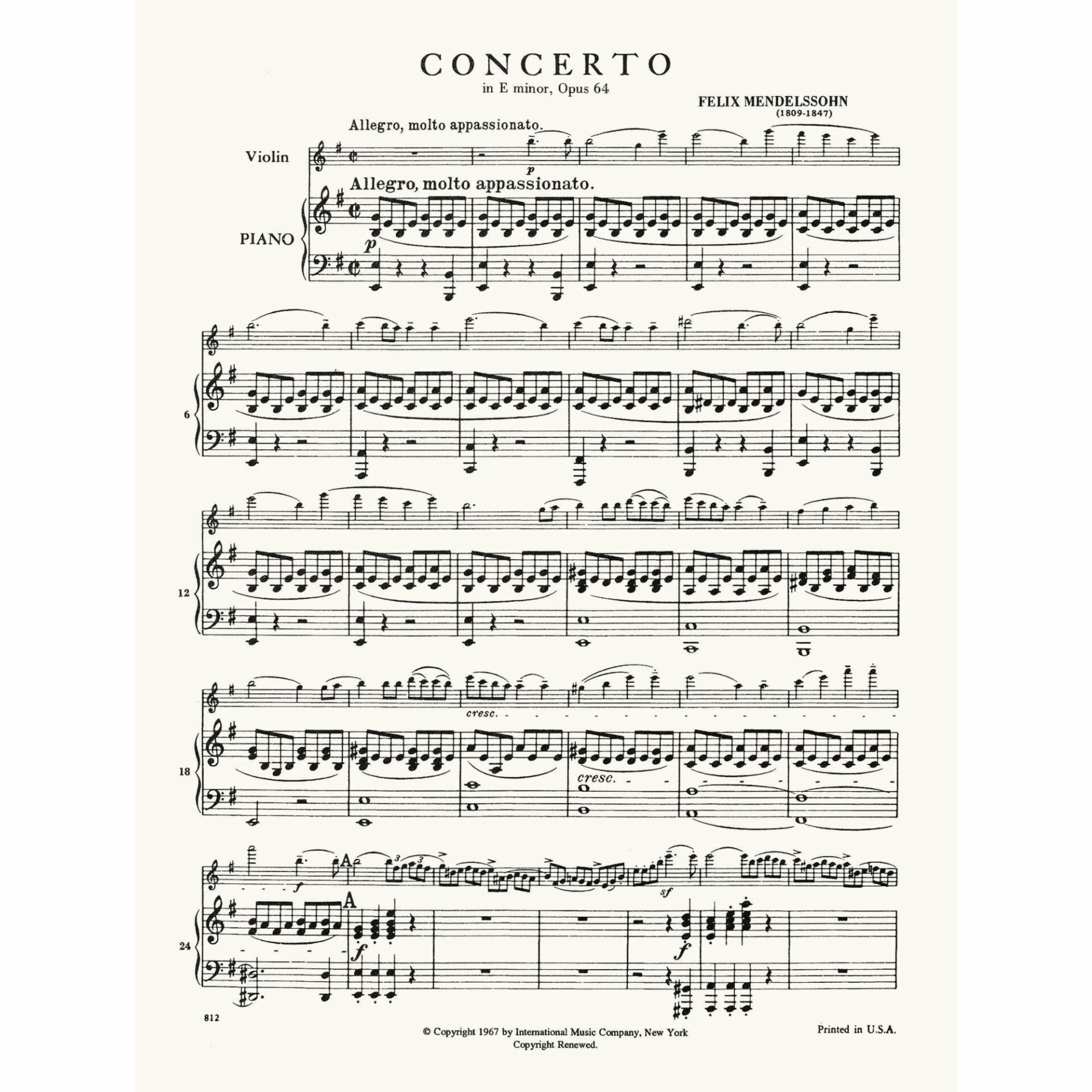 Mendelssohn — Concerto in E Minor, Op. 64 for Violin and Piano