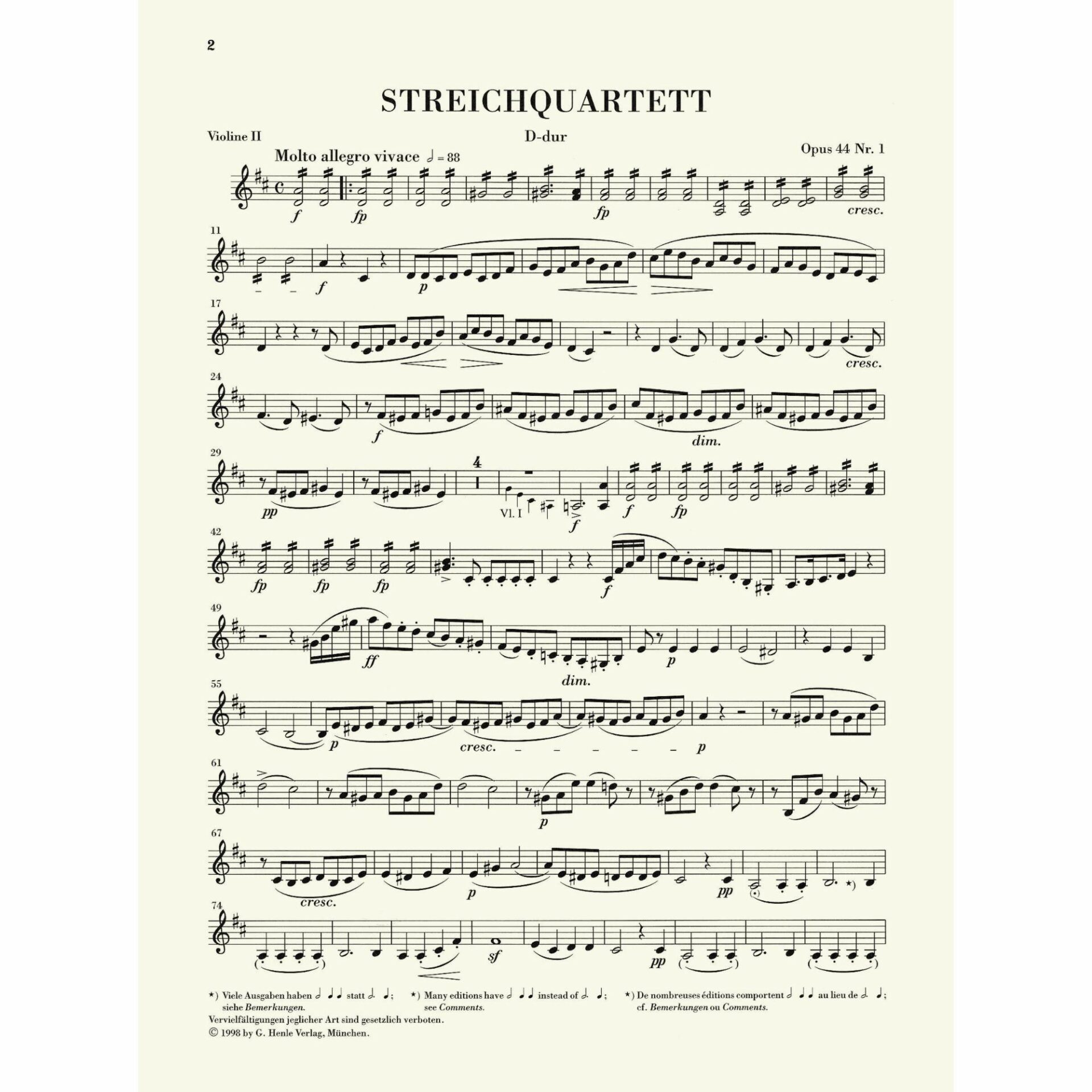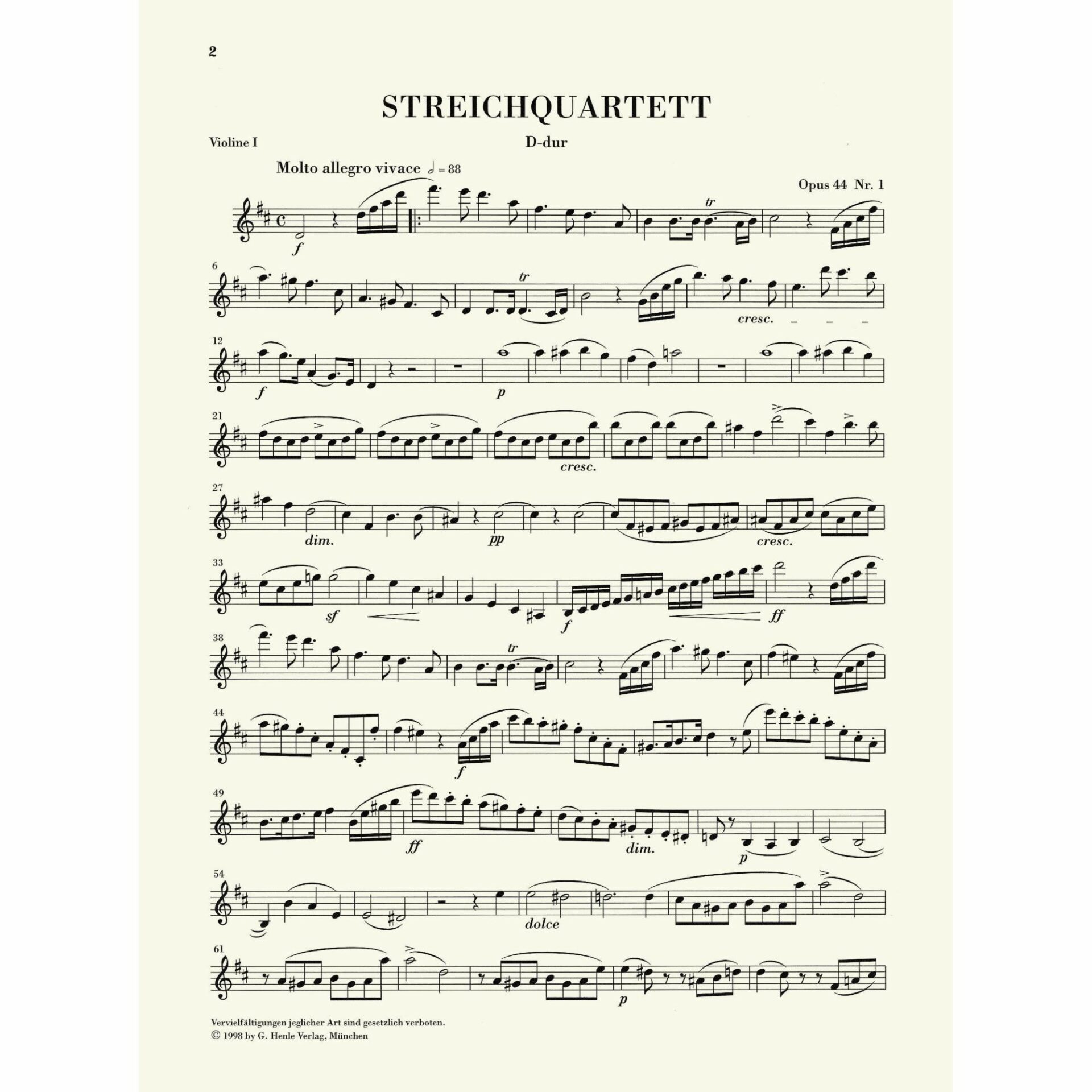 • String Quartet No. 3 in D major, Op. 44, No. 1