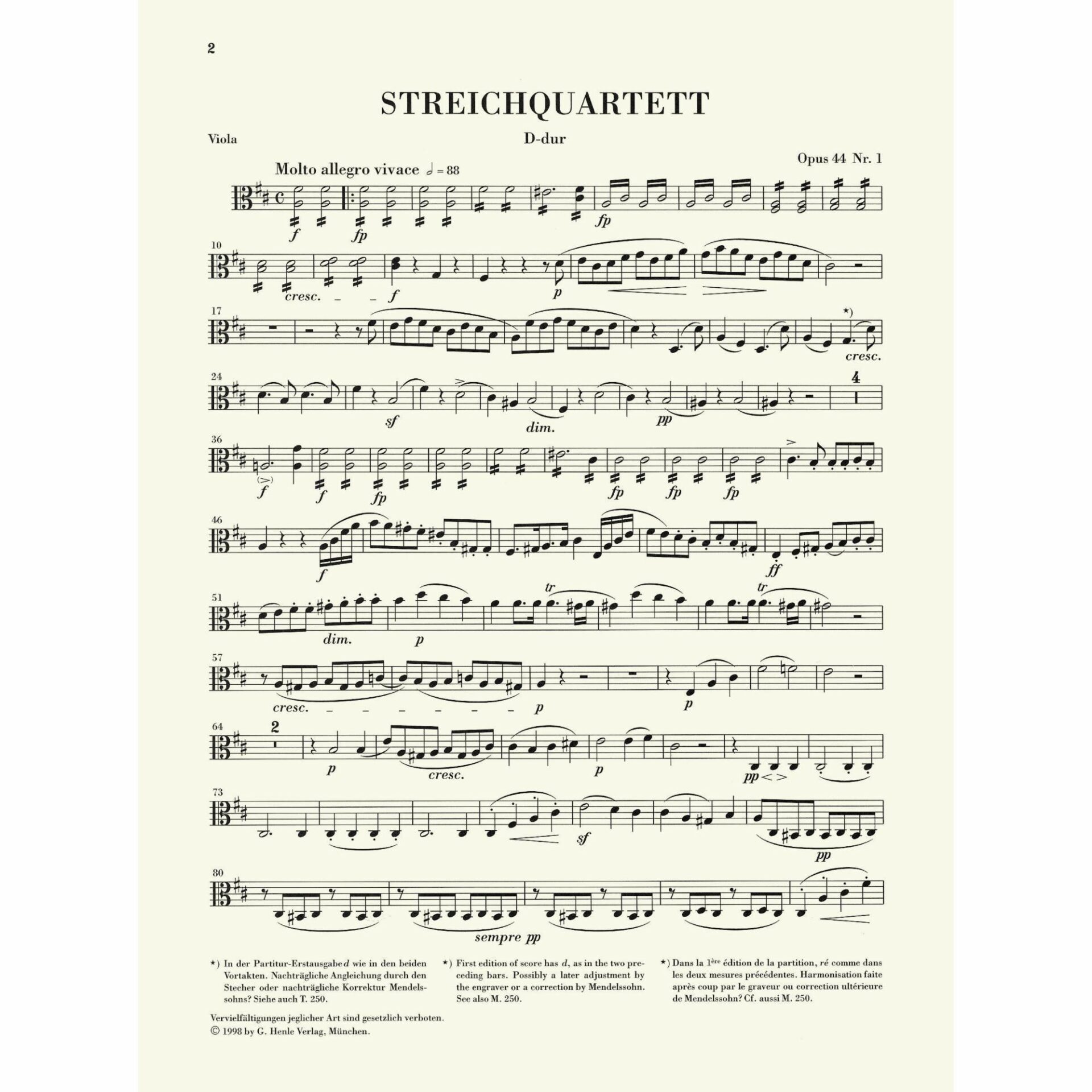 Mendelssohn — String Quartets, Op. 44