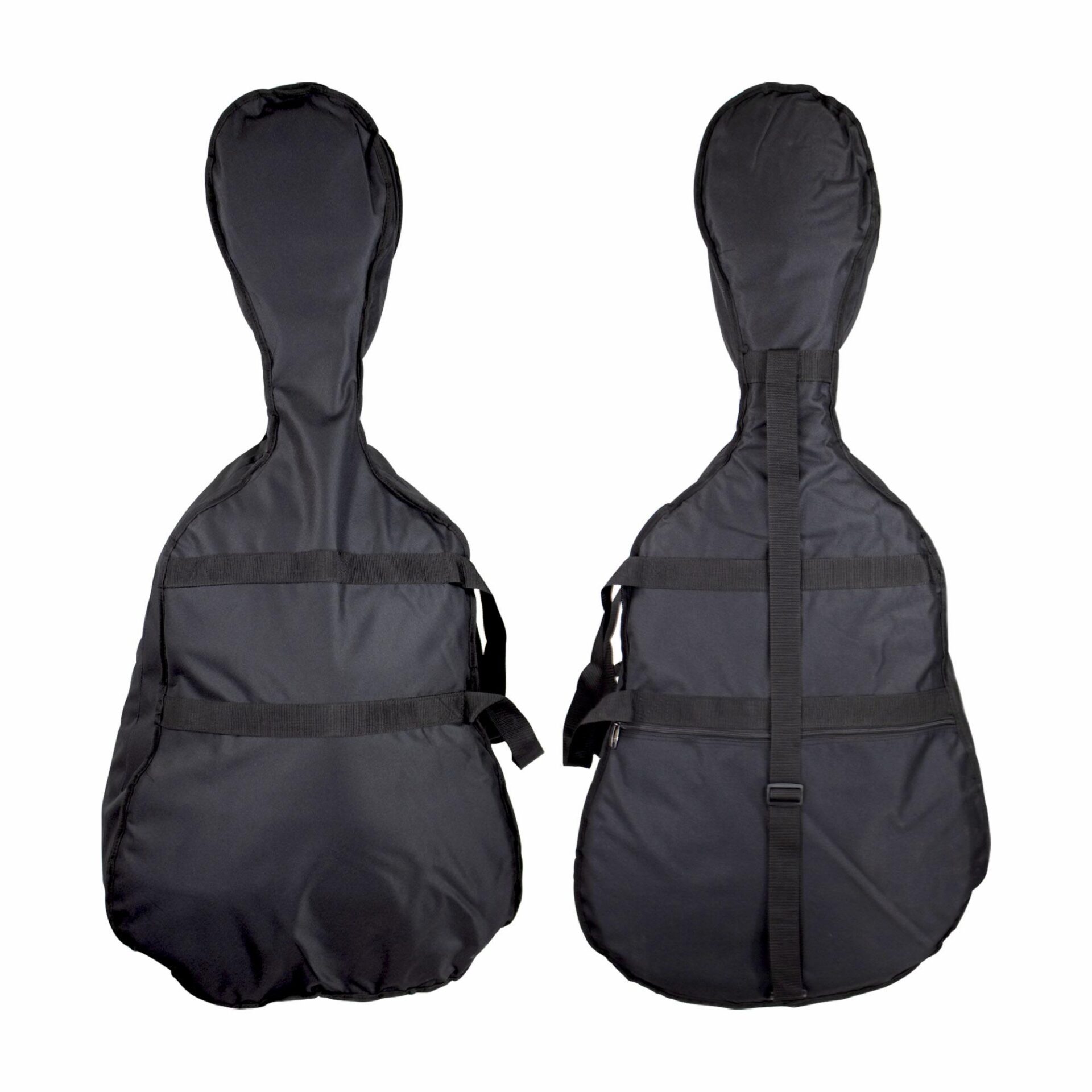 Exterior: Standard Guitarron form.  48″ x 22″.  3 lbs.  Black nylon over thick padding.  Fastens with zipper.  Large accessory pocket with zipper.  Side handle; shoulder strap.  Stitched piping.