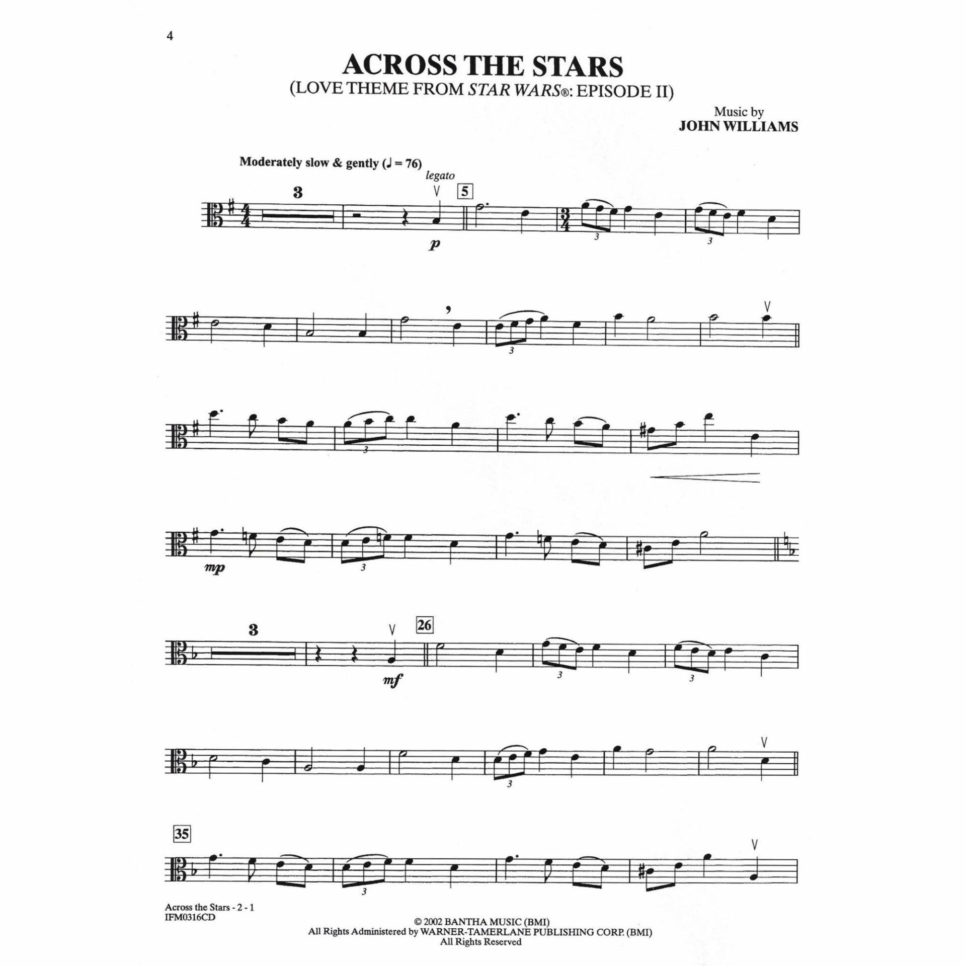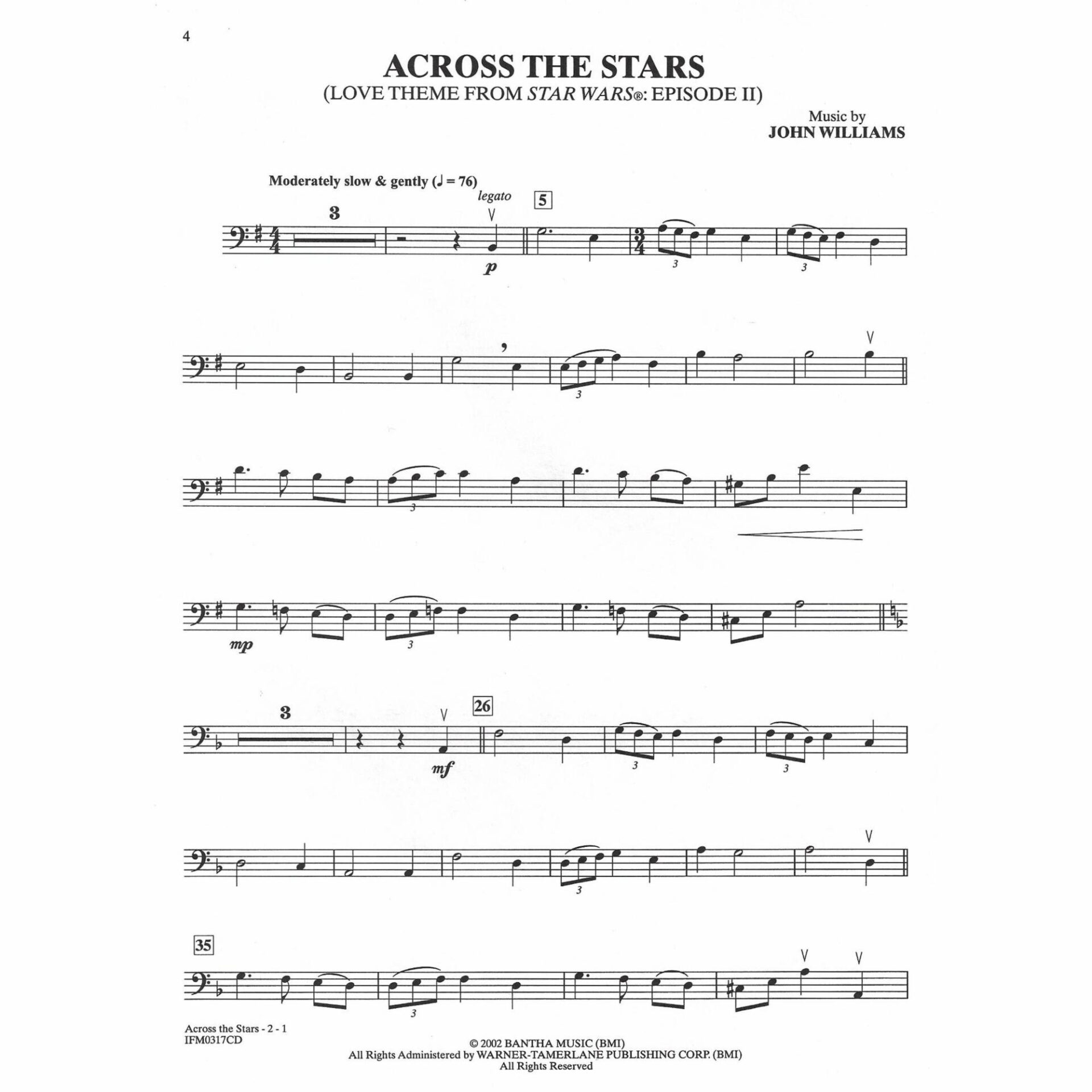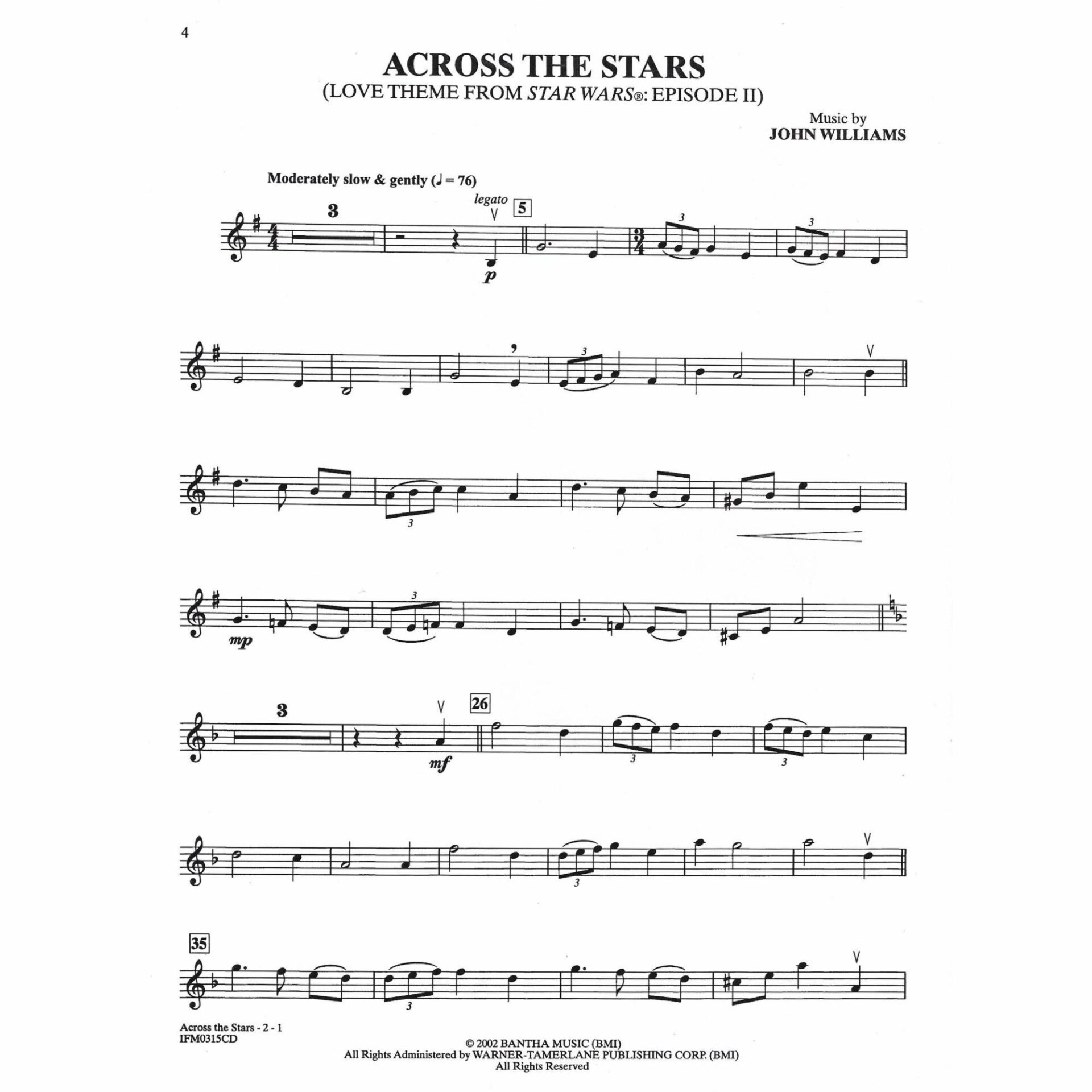- Across the Stars, love theme from Star Wars: Episode II Attack of the Clones – John Williams