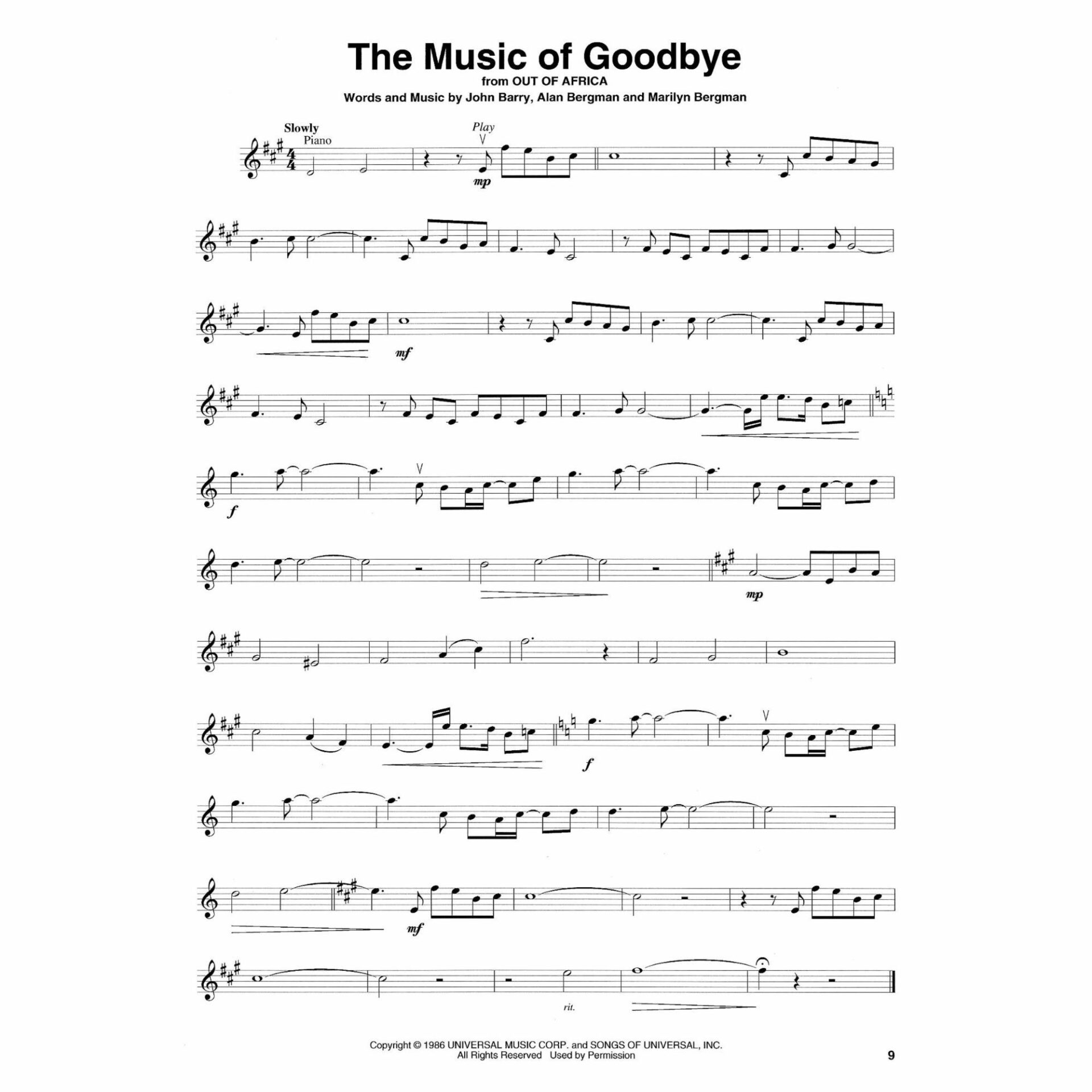 The Music of Goodbye, from Out of Africa – John Barry