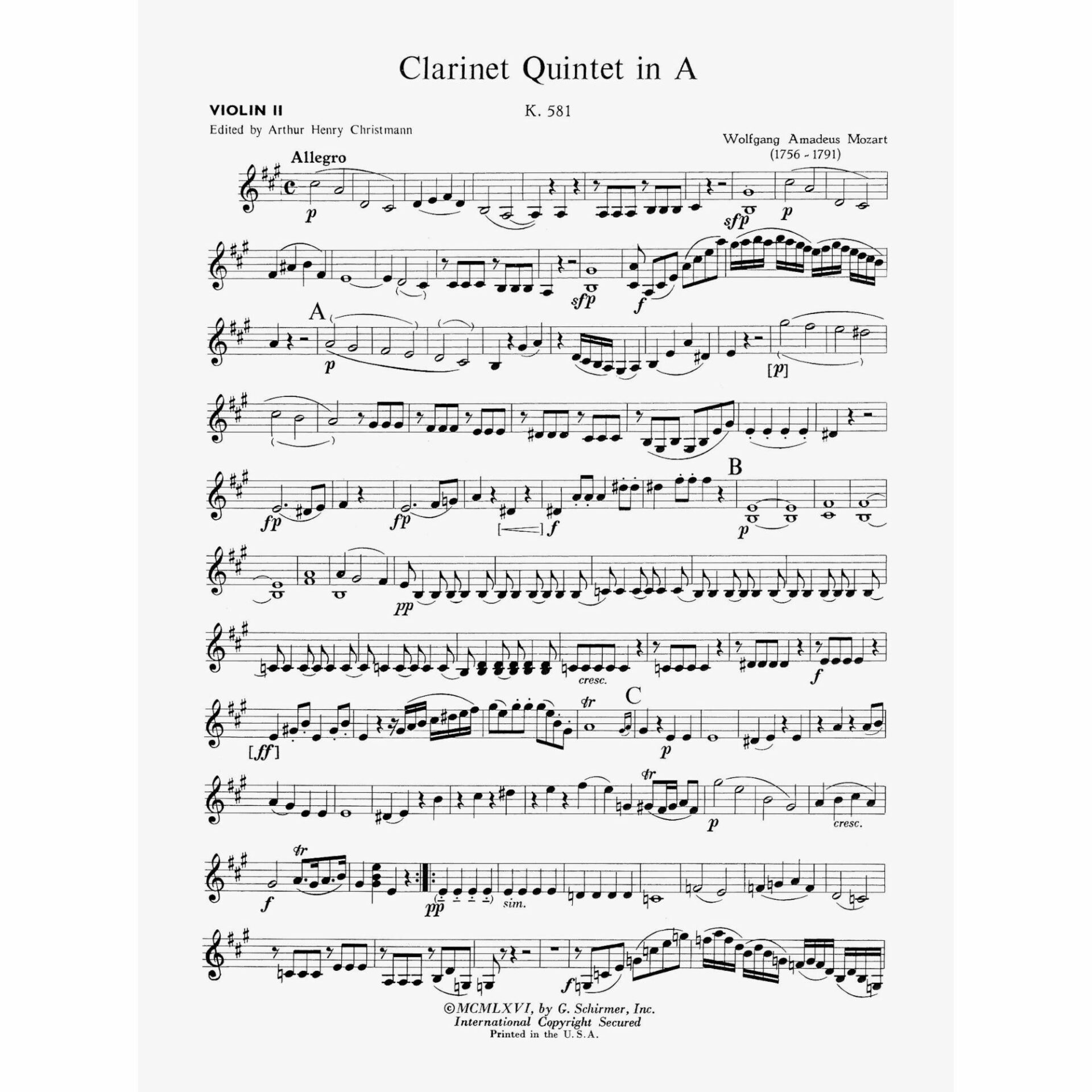 Title: Clarinet Quintet in A Major, K. 581