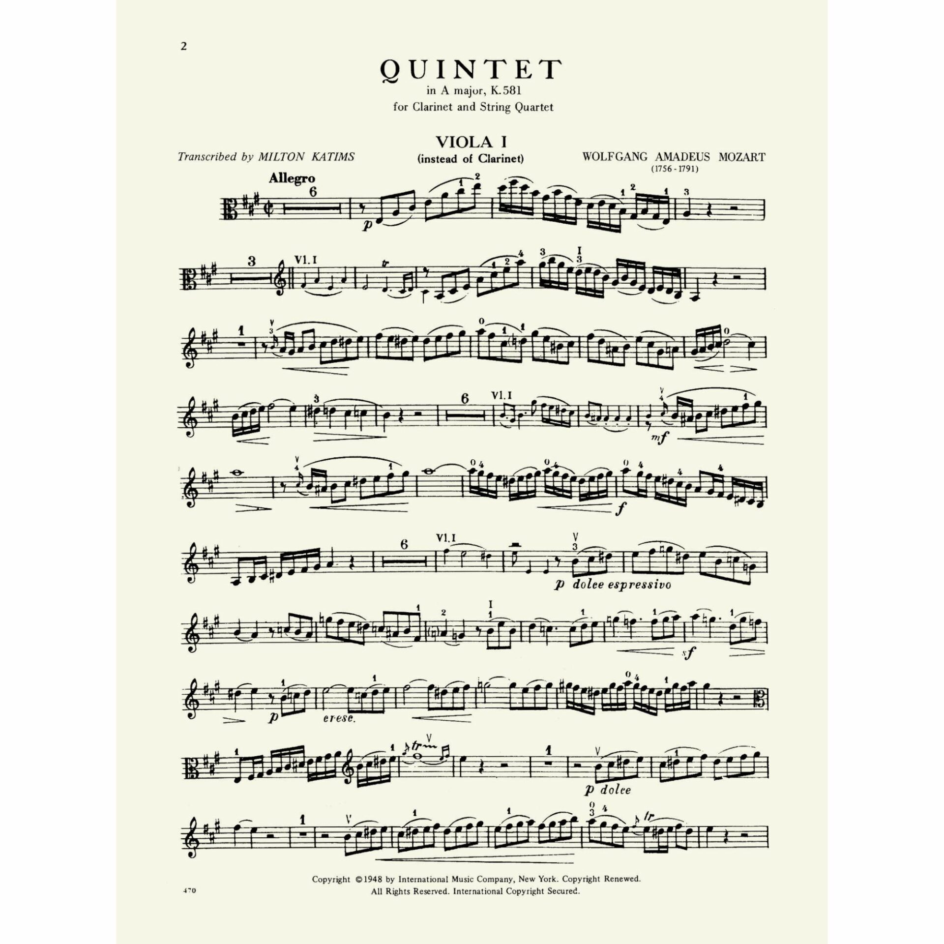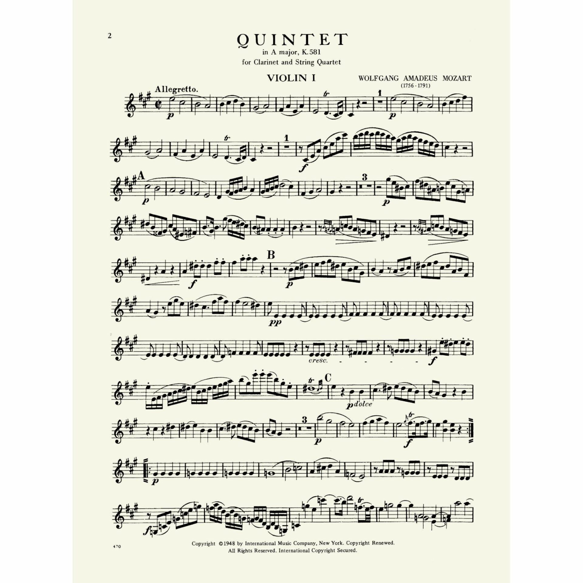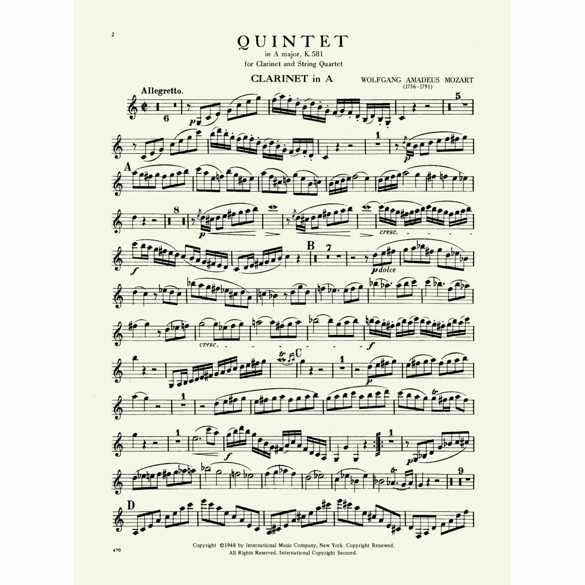 Title: Quintet in A Major, K. 581