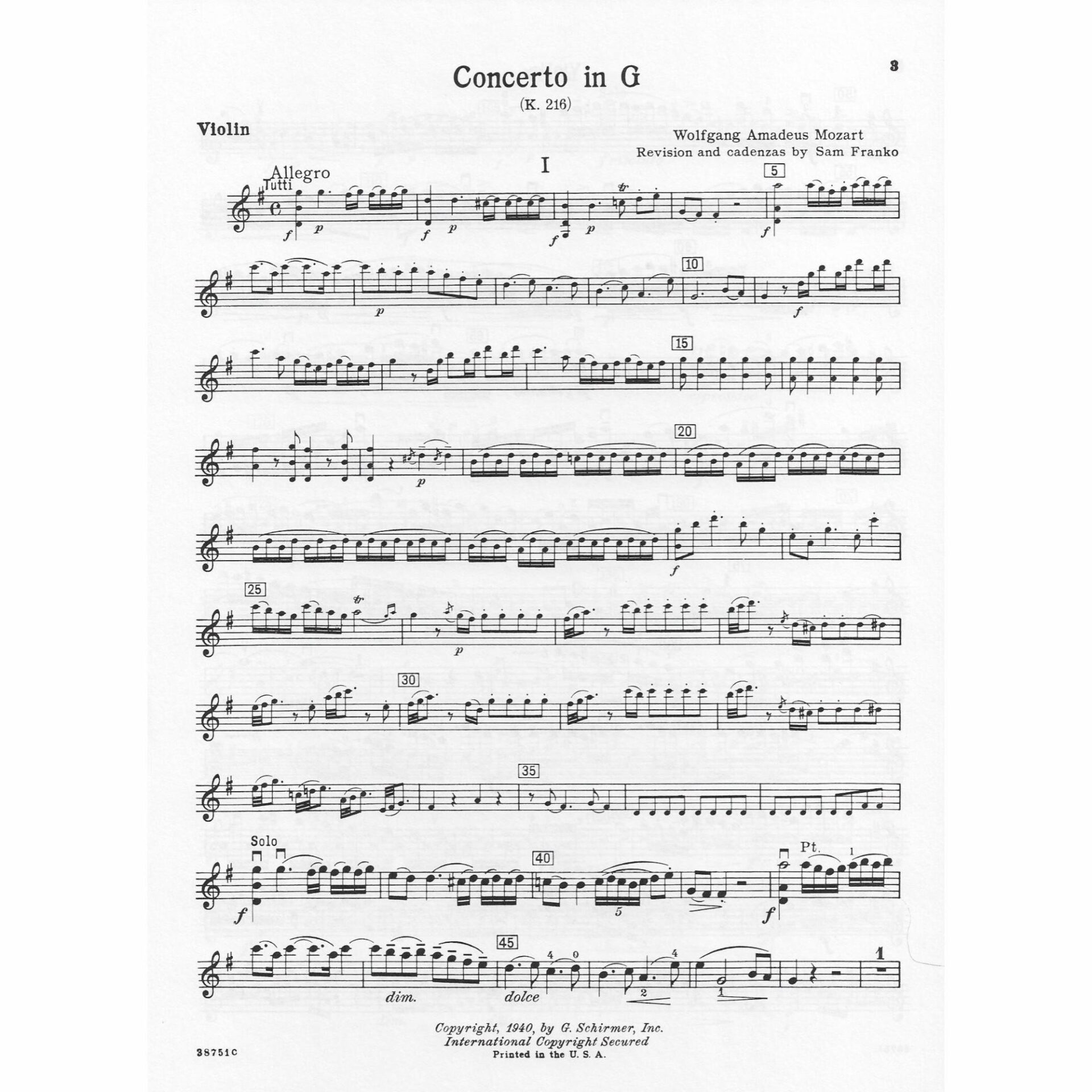 Title: Concerto (No. 3) in G Major, K. 216
