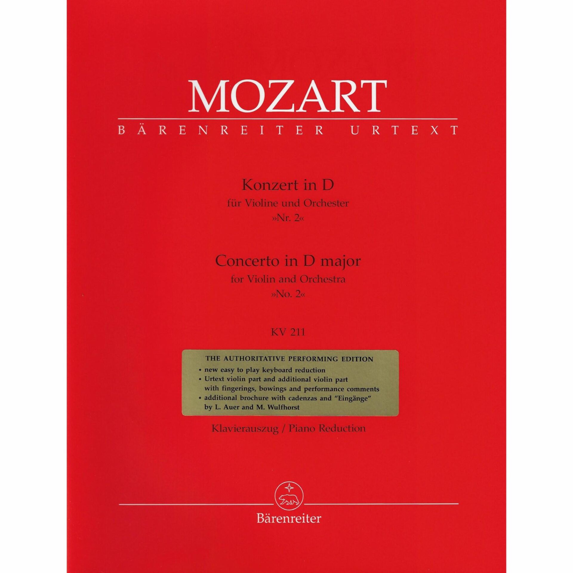 This edition includes two violin parts – one with modern technical markings (fingerings, practical bowings, etc) and another, the “urtext”, with the composer’s markings alone.