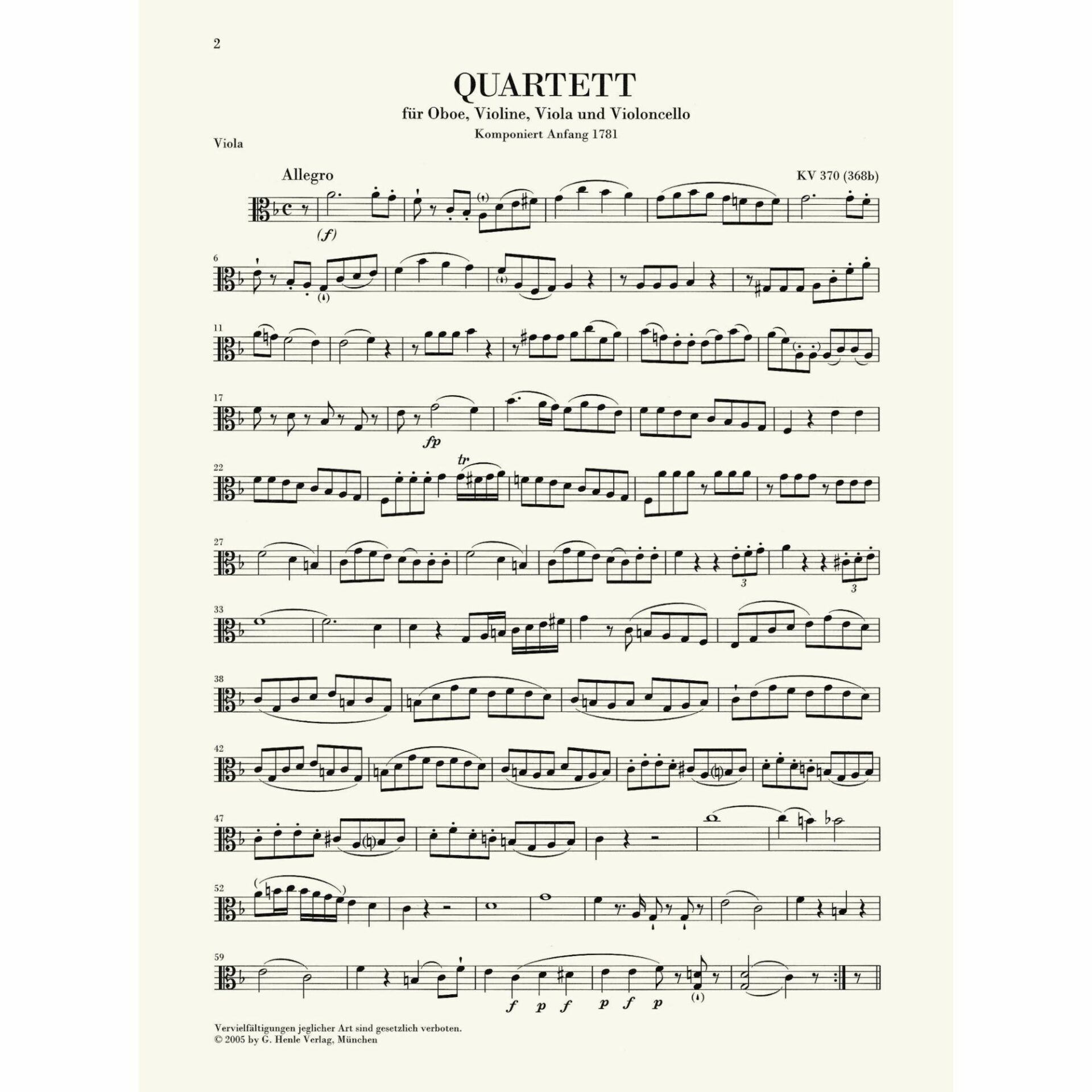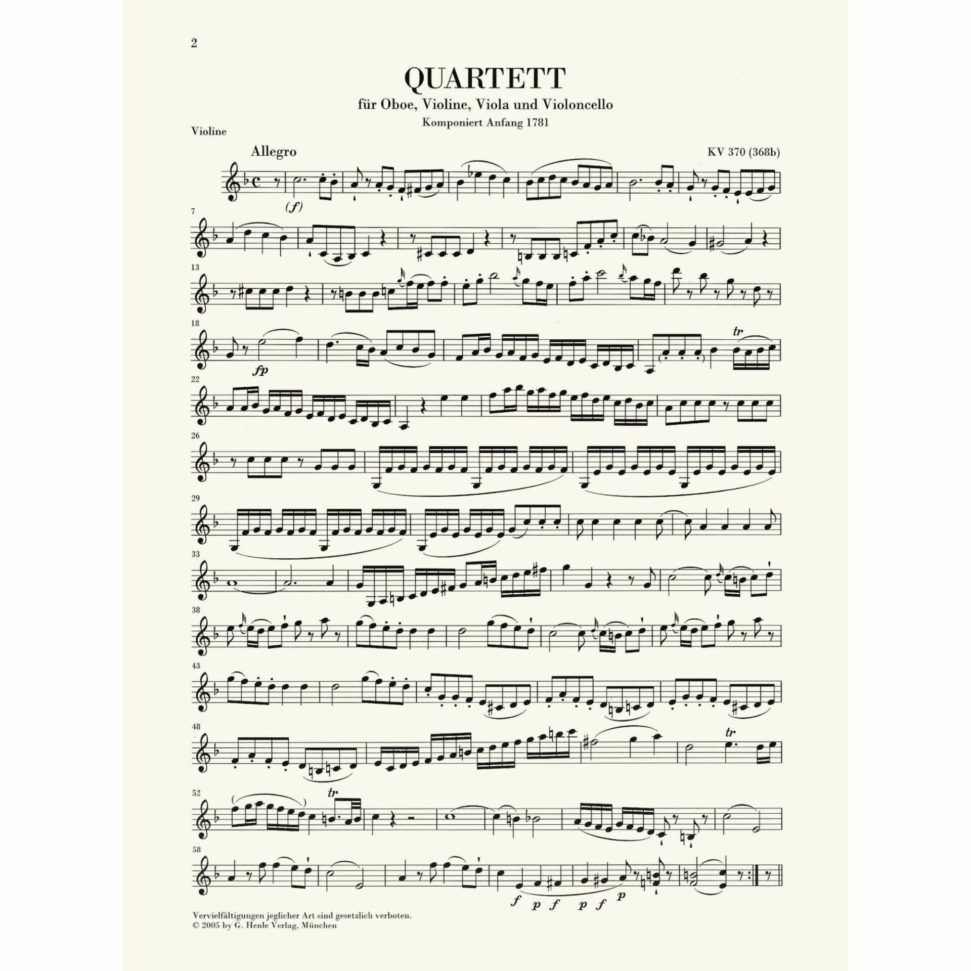 Title: Oboe Quartet in F Major, K. 370