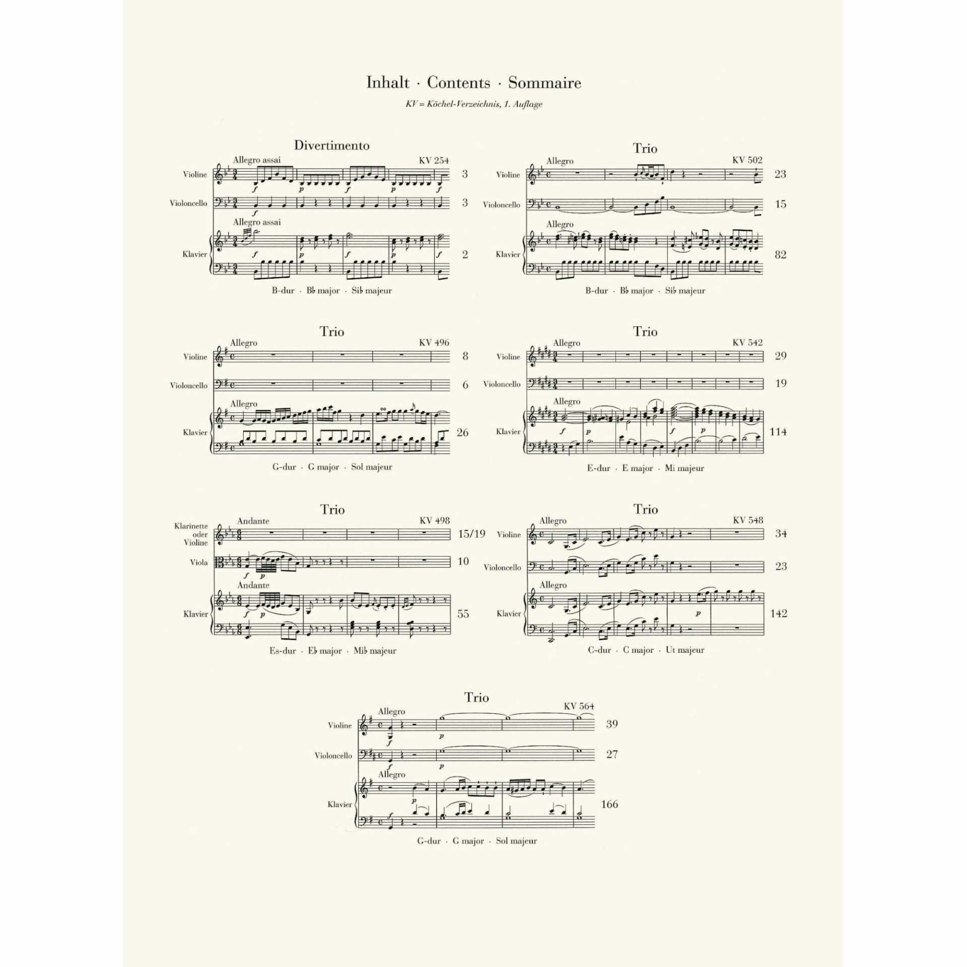 Instrumentation: Violin, cello, and piano. K. 498: Clarinet in B-flat (or violin), viola, and piano.