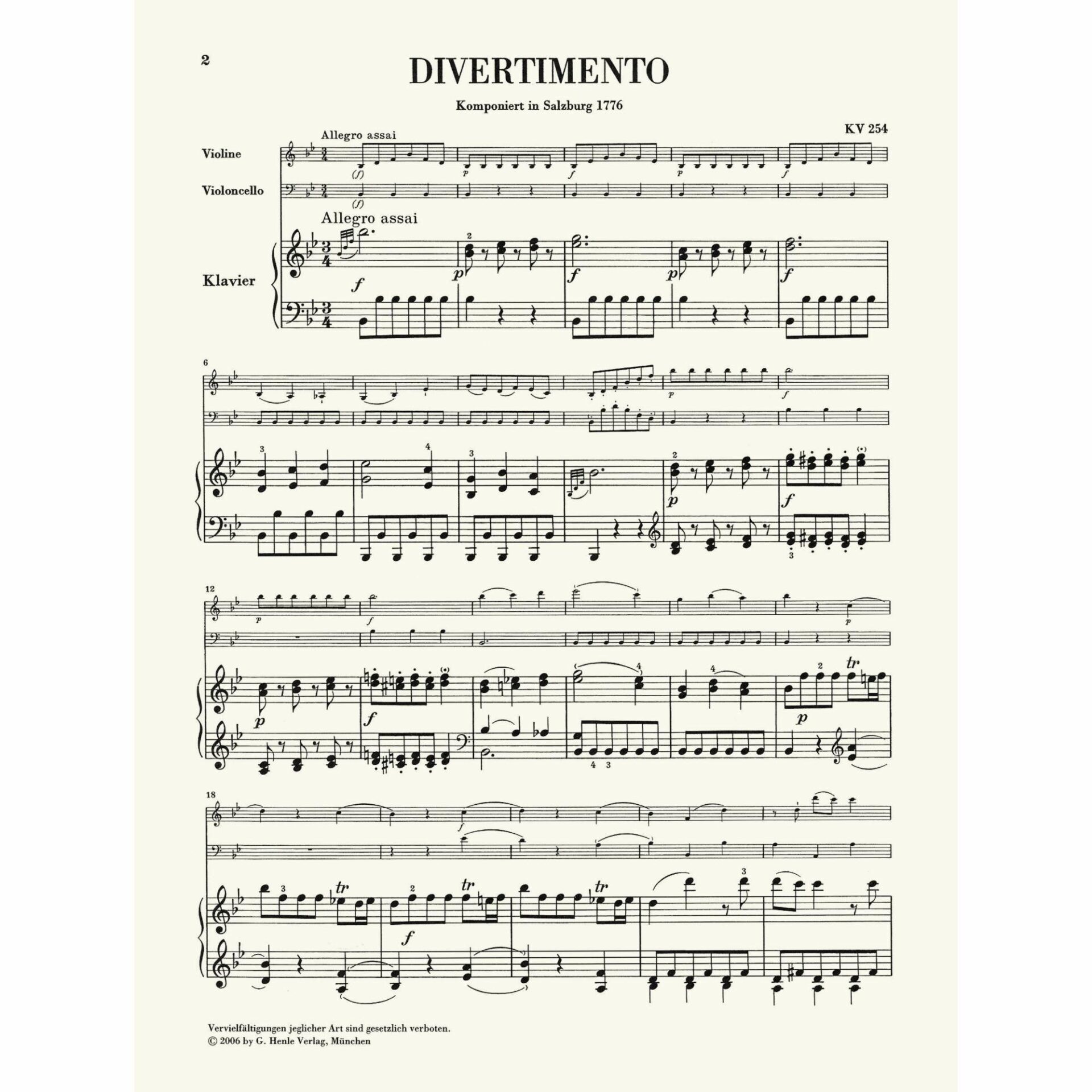 Divertimento in B-flat Major, K. 254