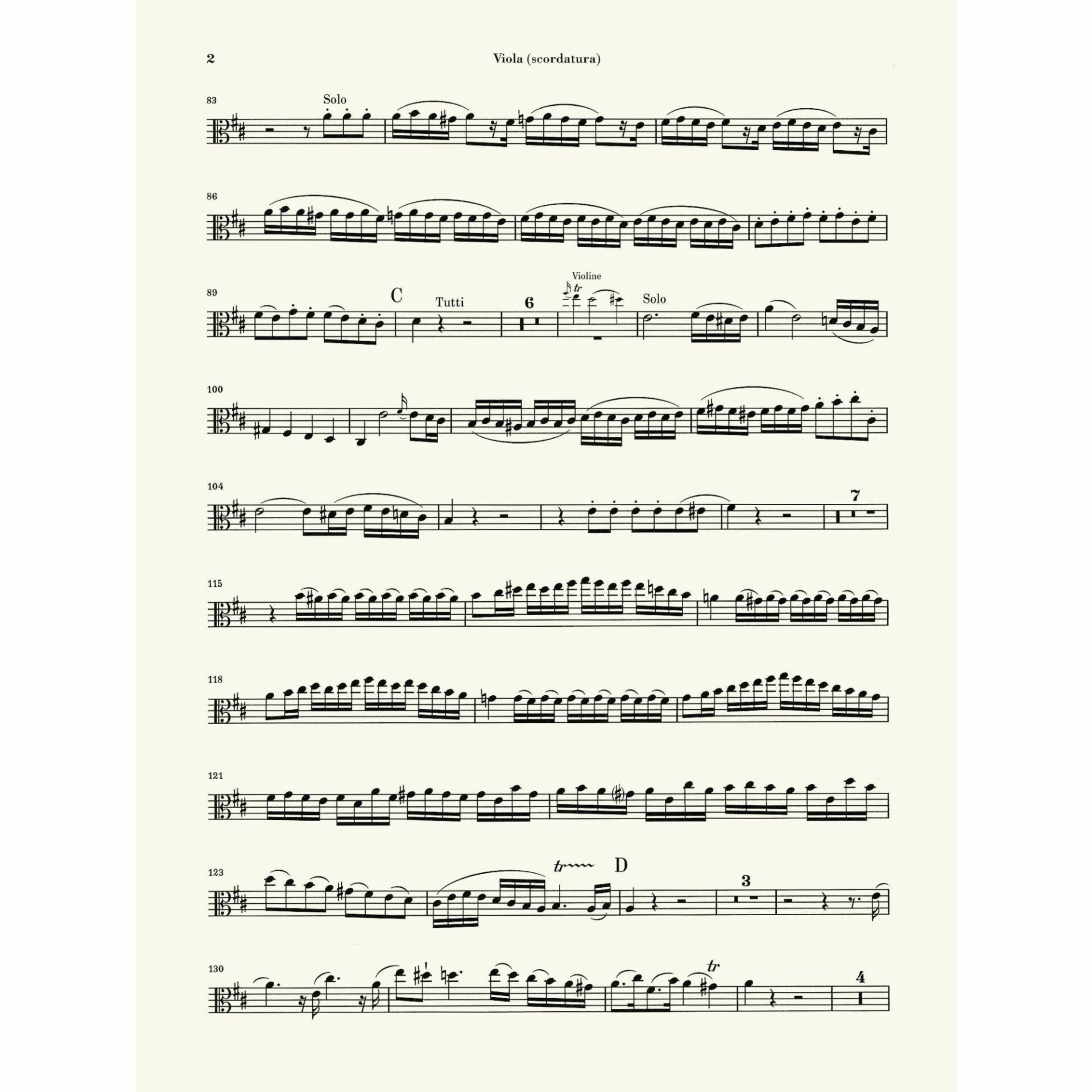 This edition includes two versions of each solo part – one with modern technical markings (fingerings, practical bowings, etc) and another, the “urtext”, with the composer’s markings alone.  Also included is the original scordatura version of the viola part.