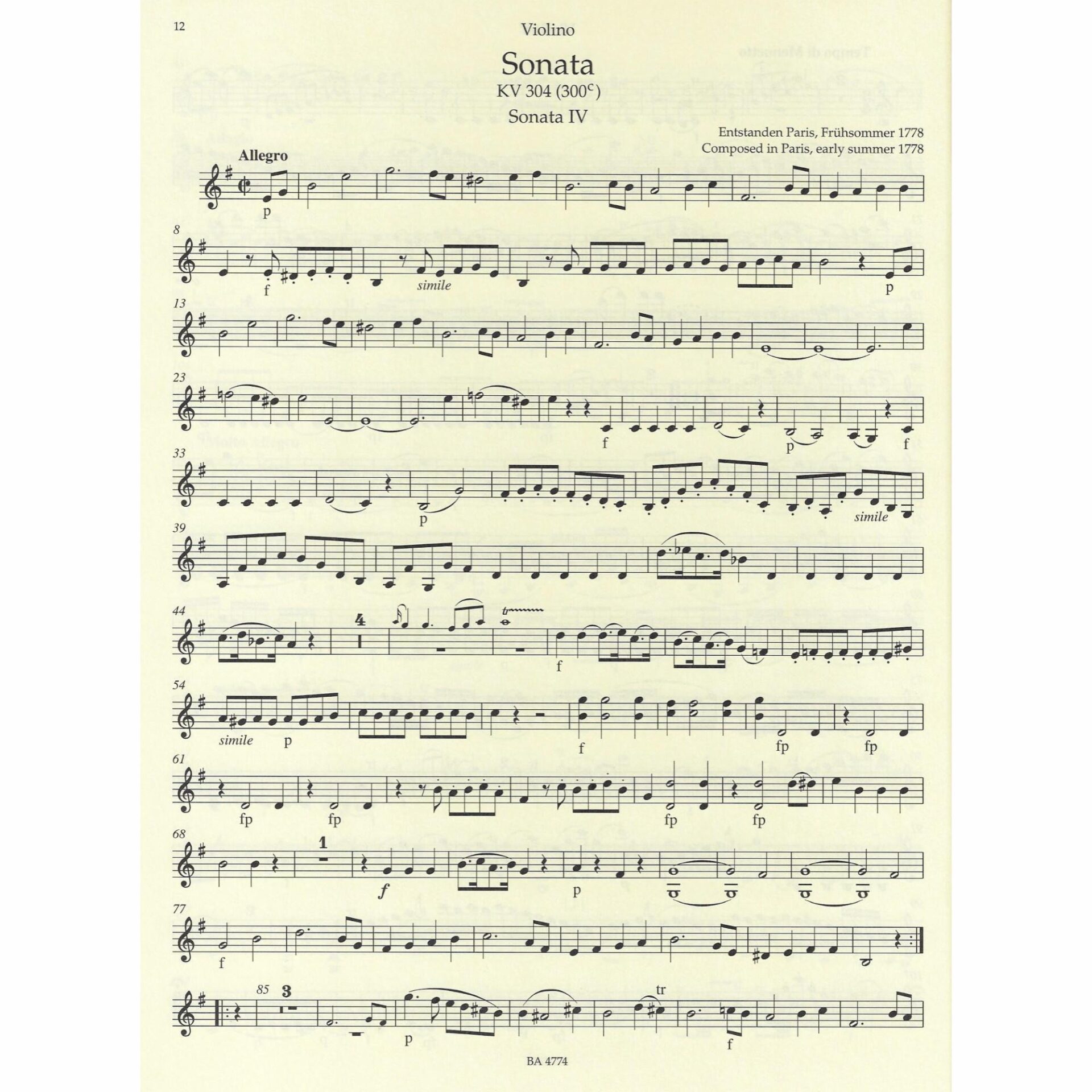 • Violin Sonata in G Major, K. 301
