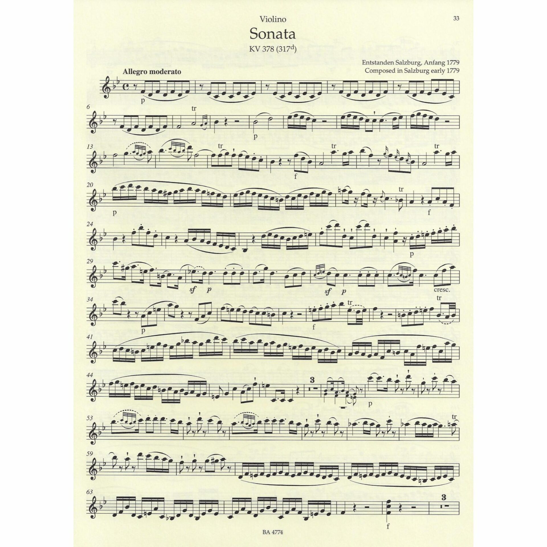 • Violin Sonata in B-flat Major, K. 378