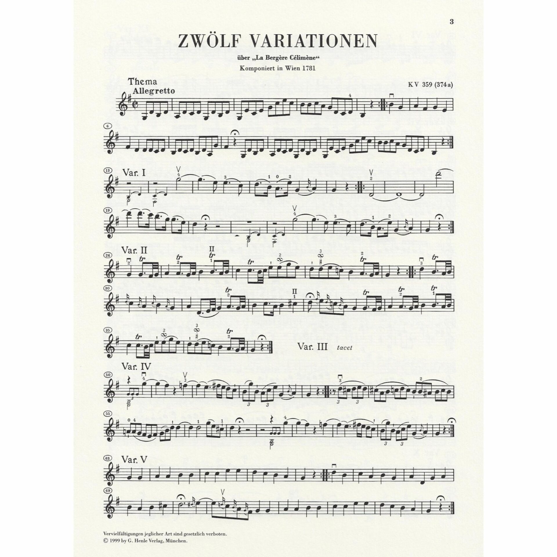 - 12 Variations in G Major on the French song “La bergere Celimene”, K. 359