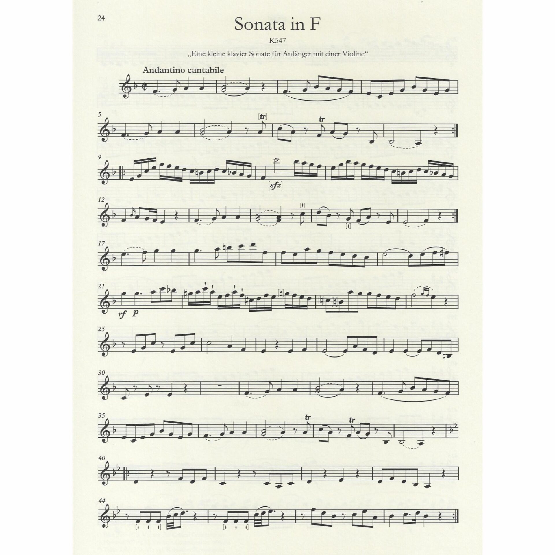 • Violin Sonata in F Major, K. 547 “For Beginners”