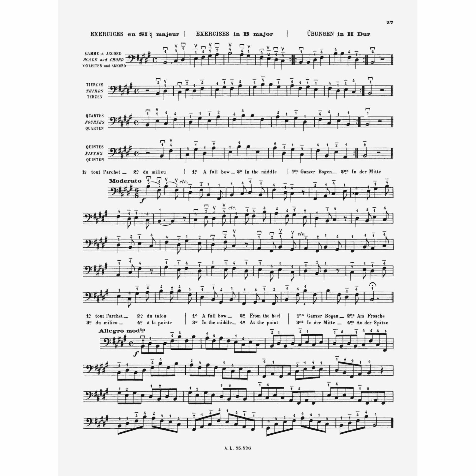 • Part 1: Progressive Bow Exercises – Position of the Fingers – Position Study – Thumb Position – Extensions – Scales, etc.