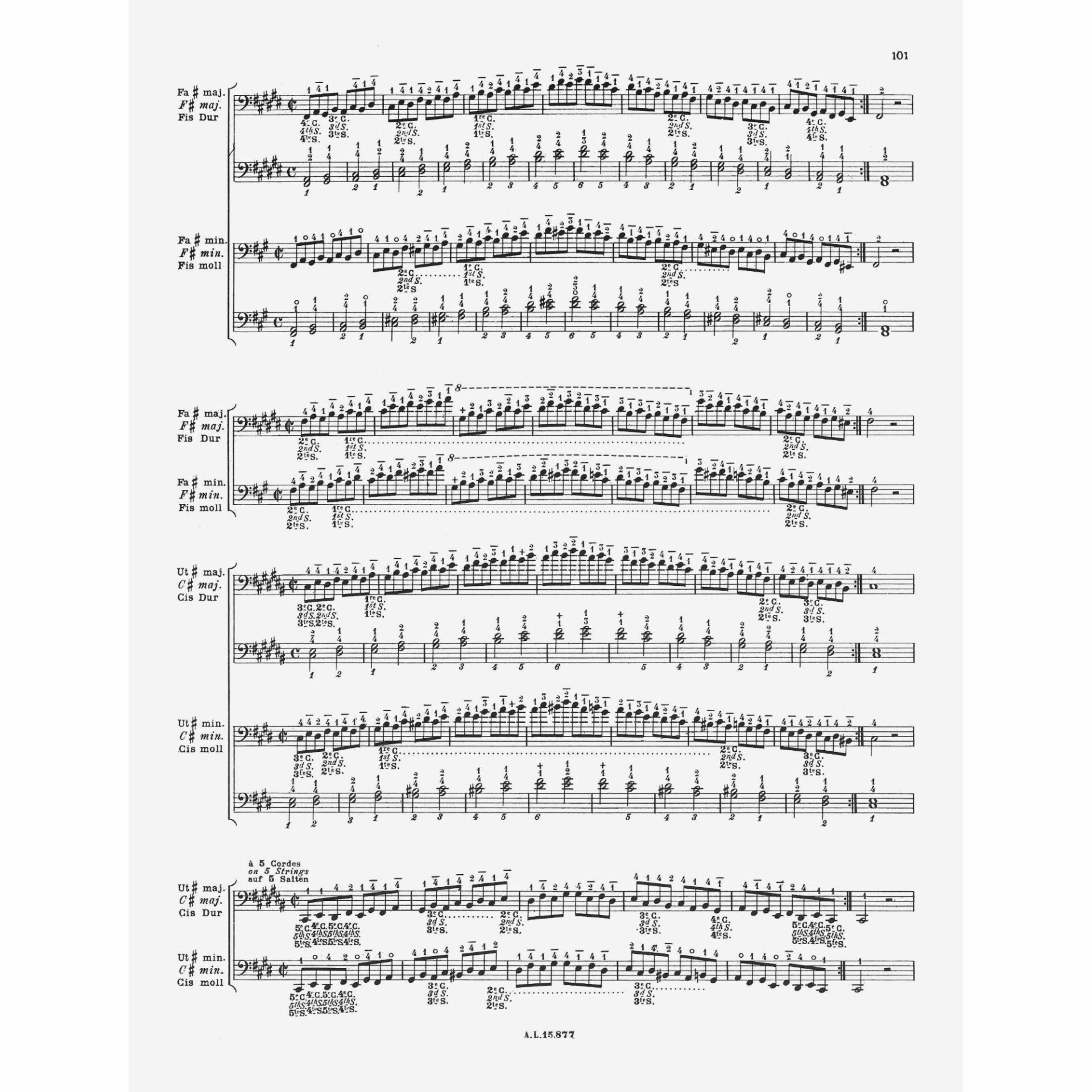 • Part 2: Technique of the Fingers and Bow – Scales – Arpeggios – Chromatic Scales – Bow Exercises – Trill – Double-Stops – Harmonics, etc.