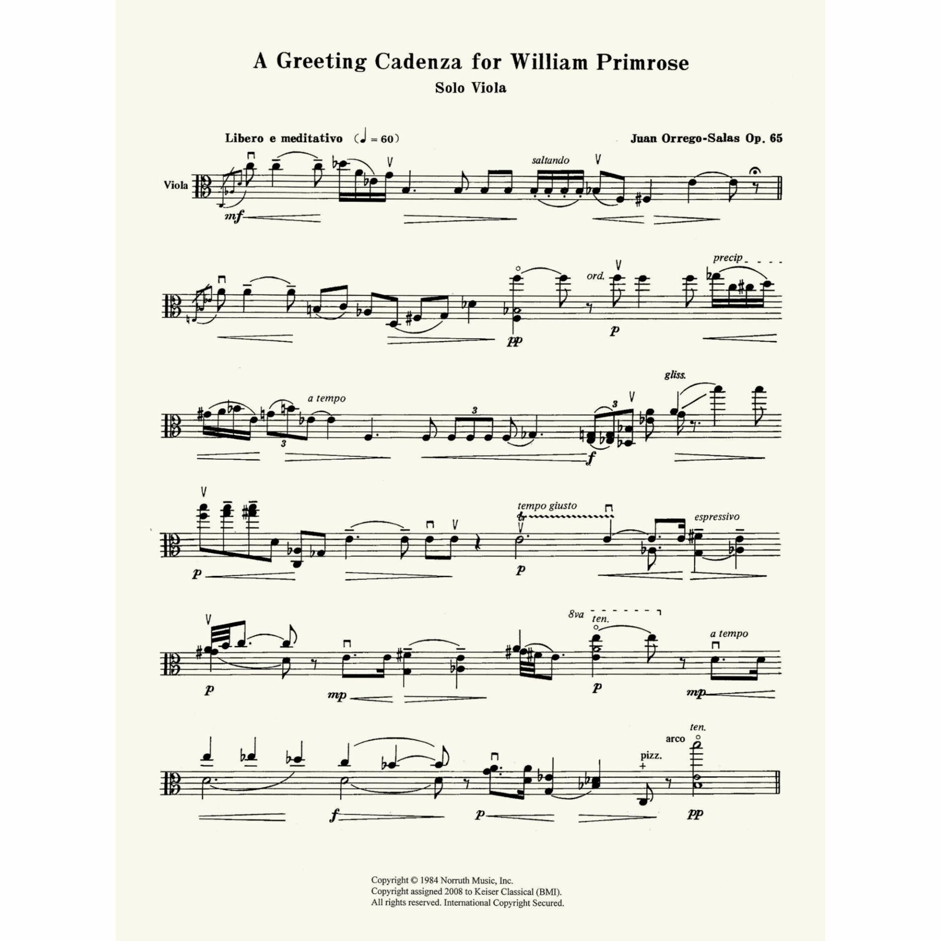 Title: A Greeting Cadenza for William Primrose