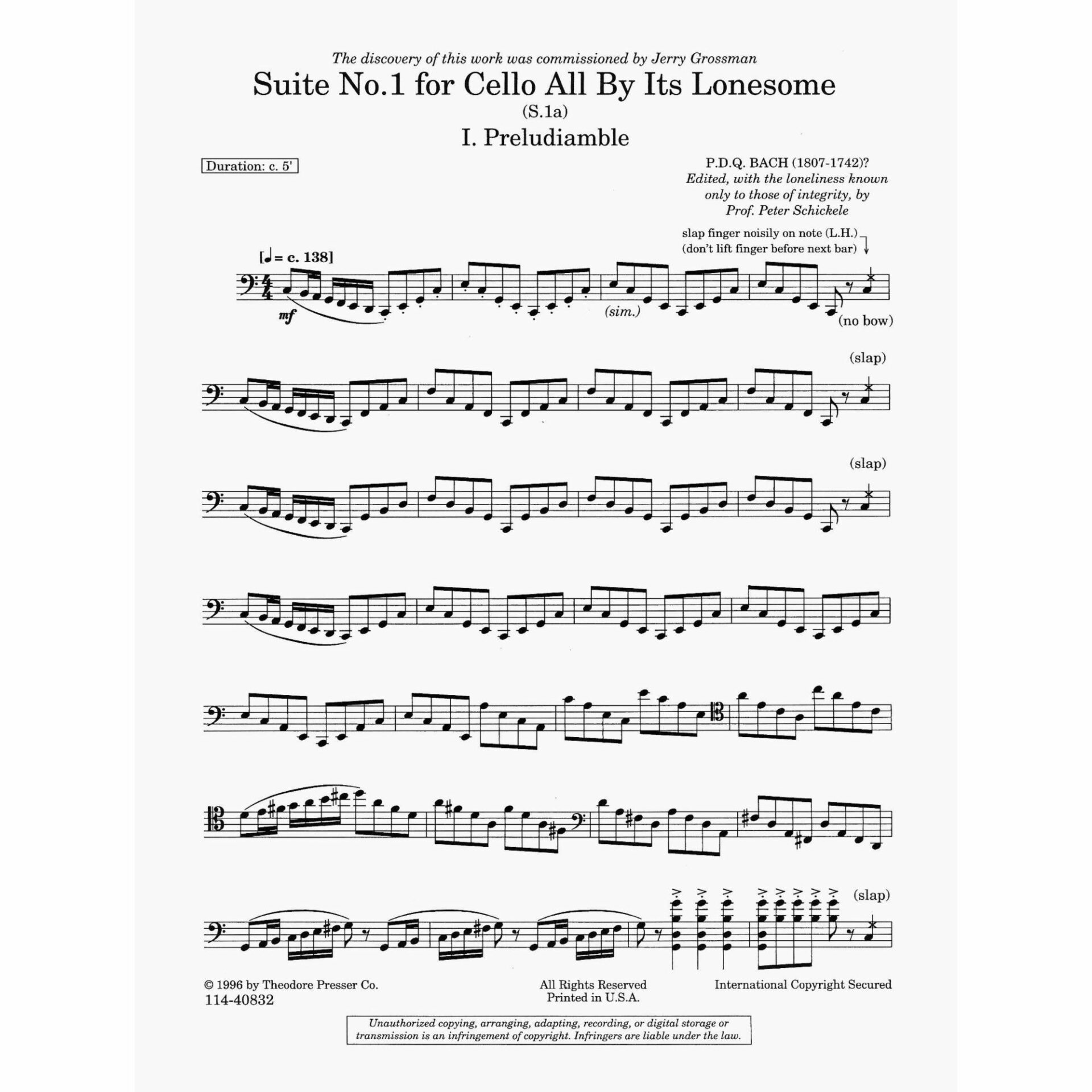 Title: Suite No. 1 for Cello All By Its Lonesome (S. 1a)