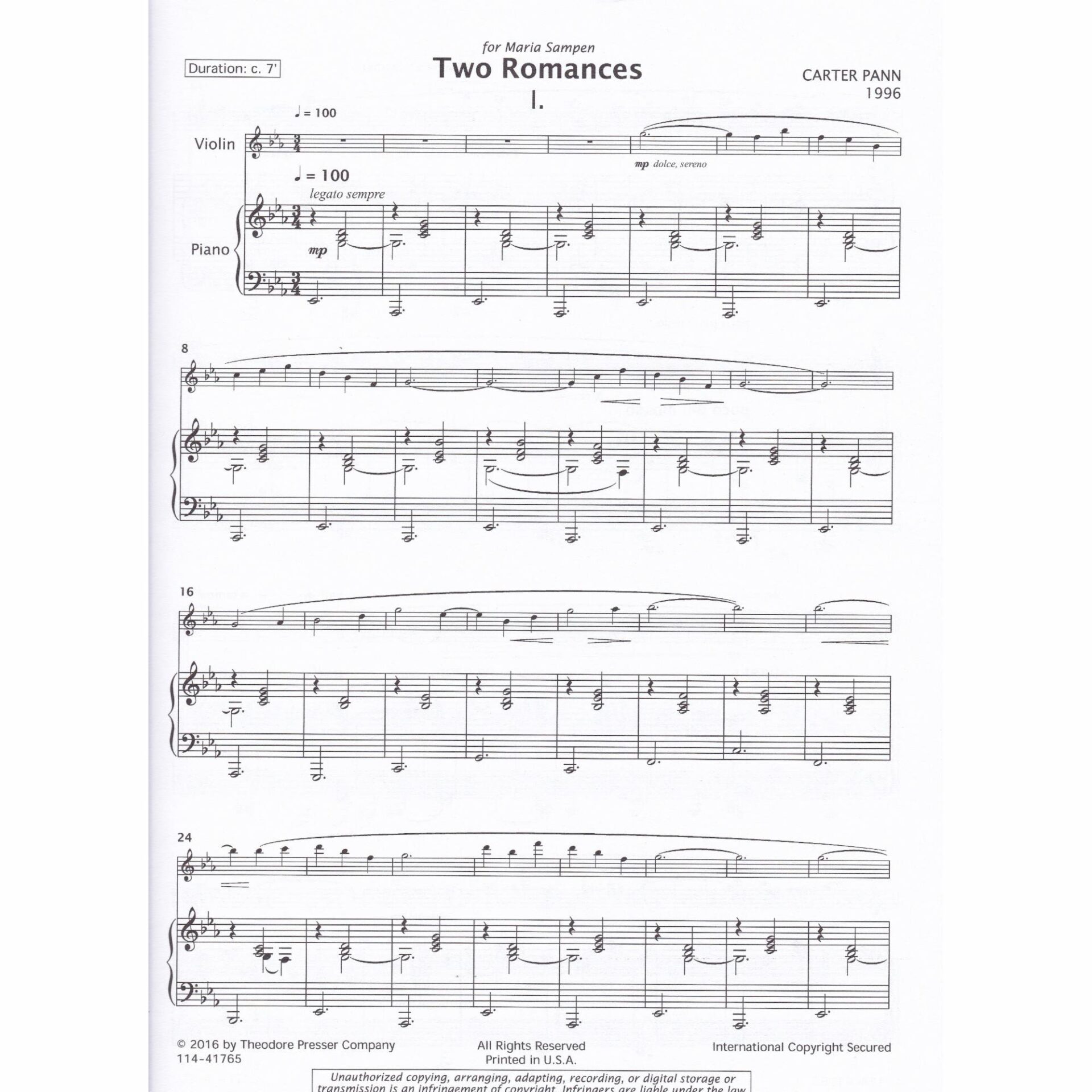 Pann — Two Romances for Violin and Piano