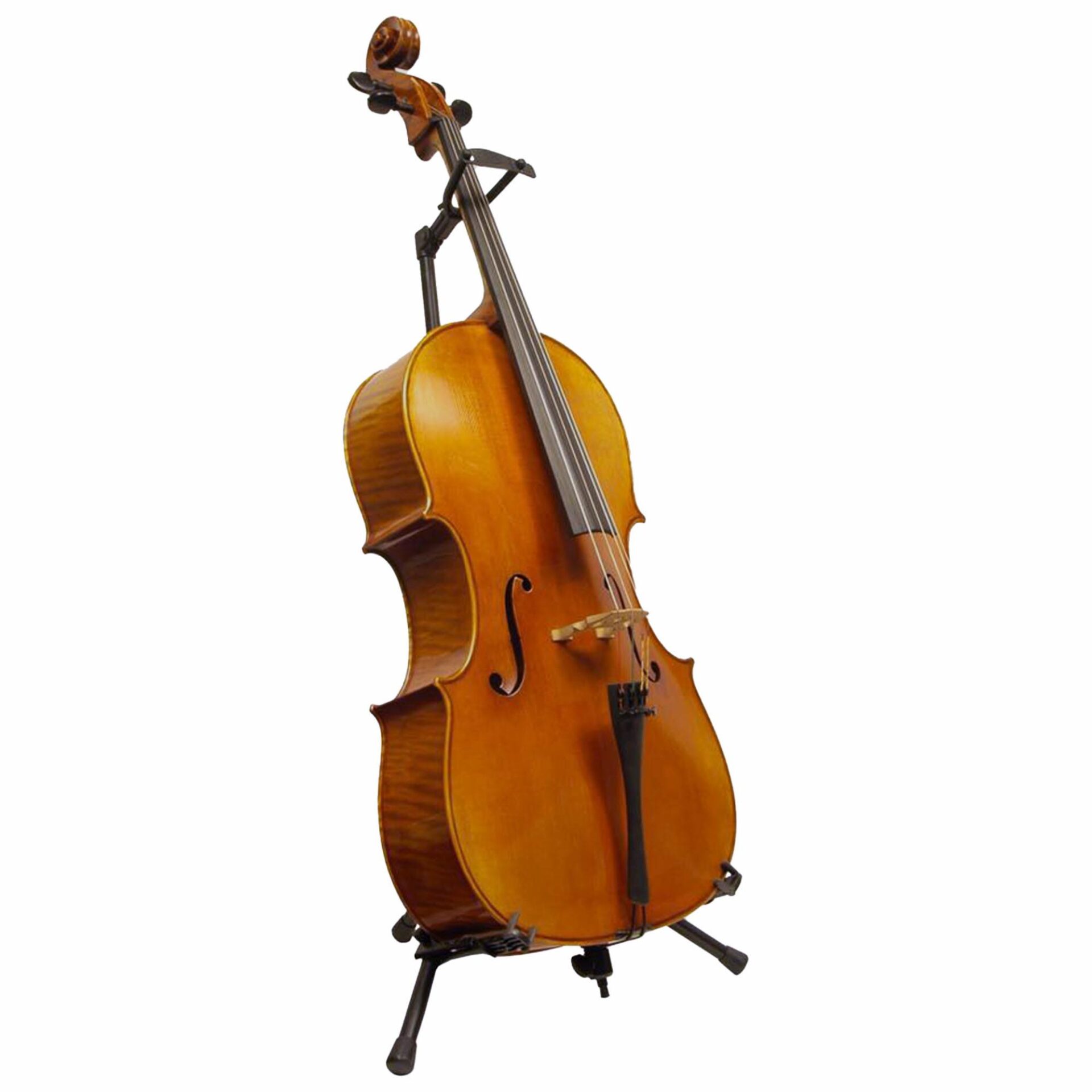 The Peak cello stand is made from a high quality tubular steel with added neck support to keep the instrument secure. Adjustable arms and neck height allow for a variety of cello sizes to be cradled. A rubber neck strap further secures the cello in place. Height from 30″ to 40″ when fully extended. Folds to 22″. Weight 2.75 lbs.