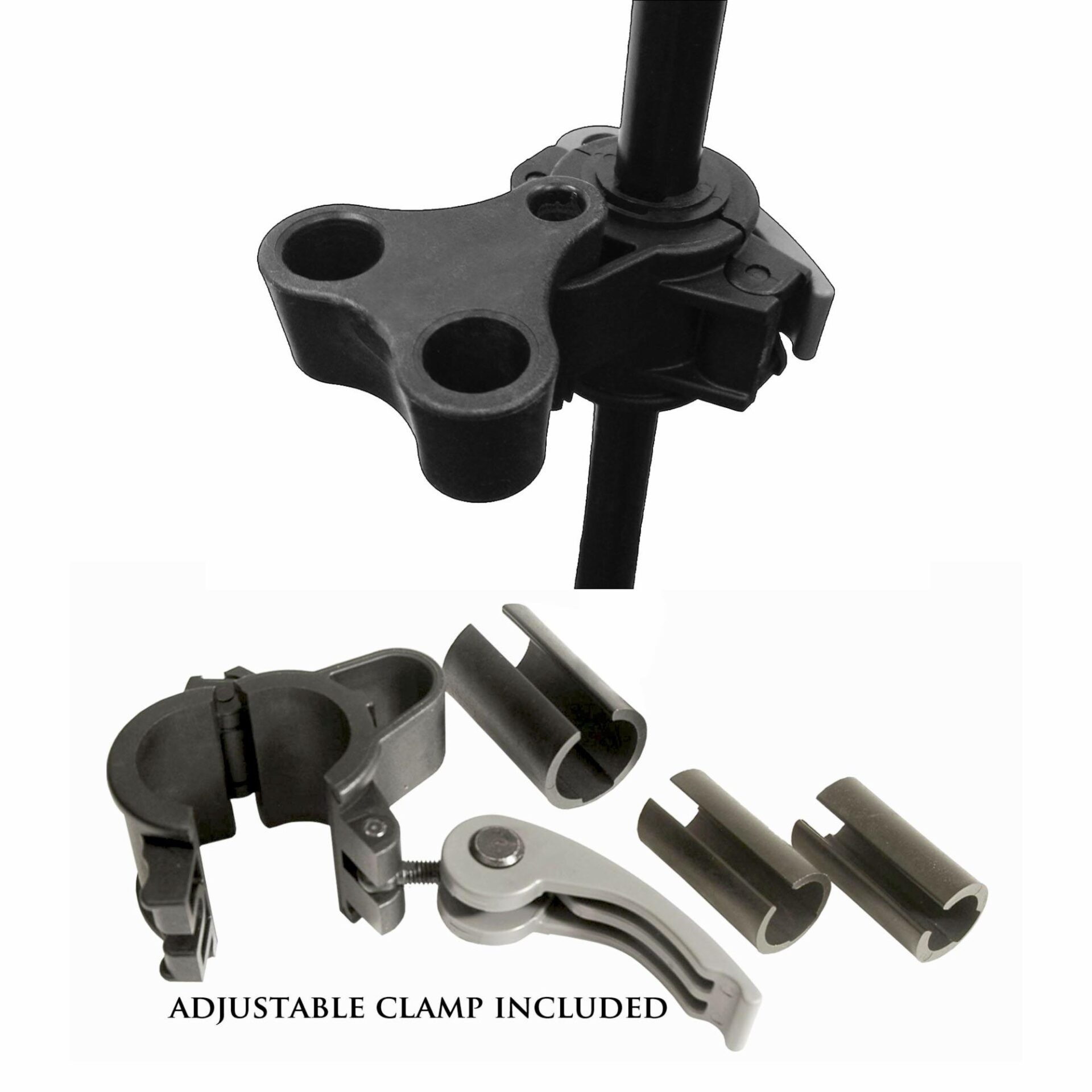 Designed to support up to two Peak attachments.  This adapter uses Peak’s Quick Clamp Lever to grip the stand.