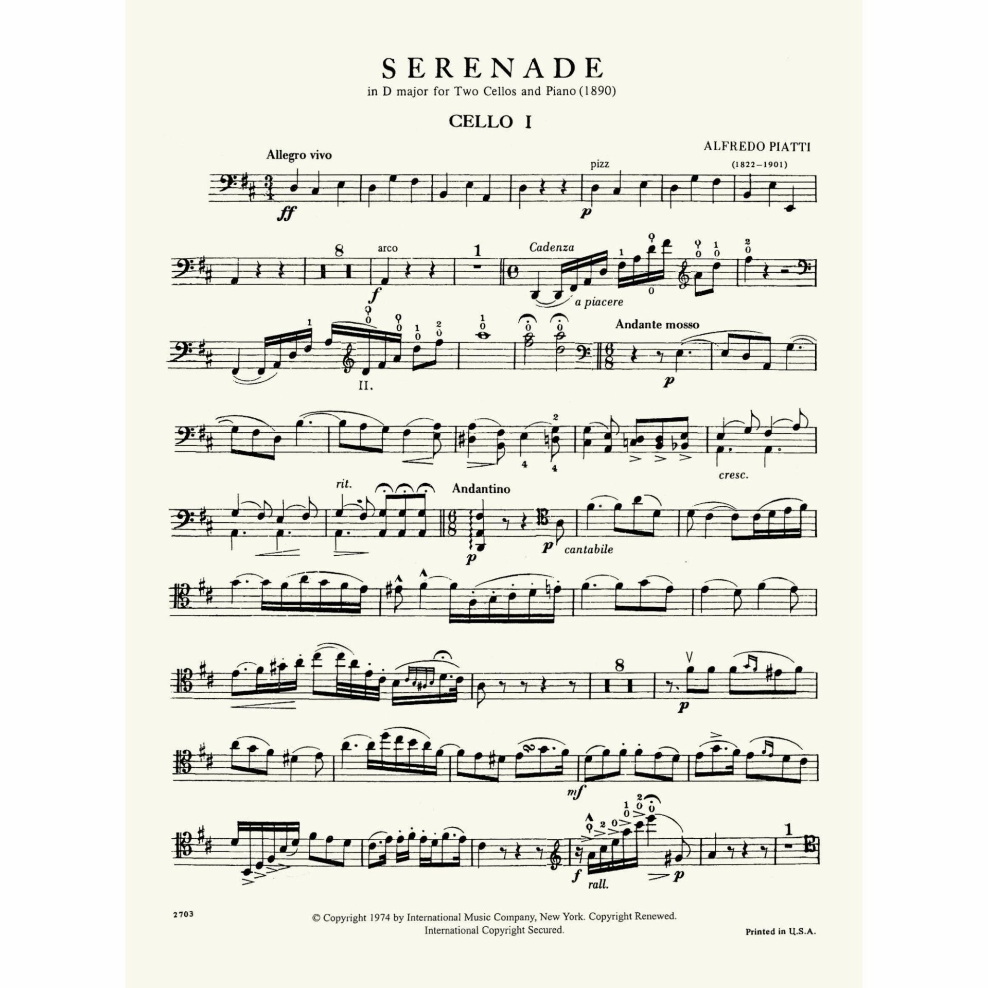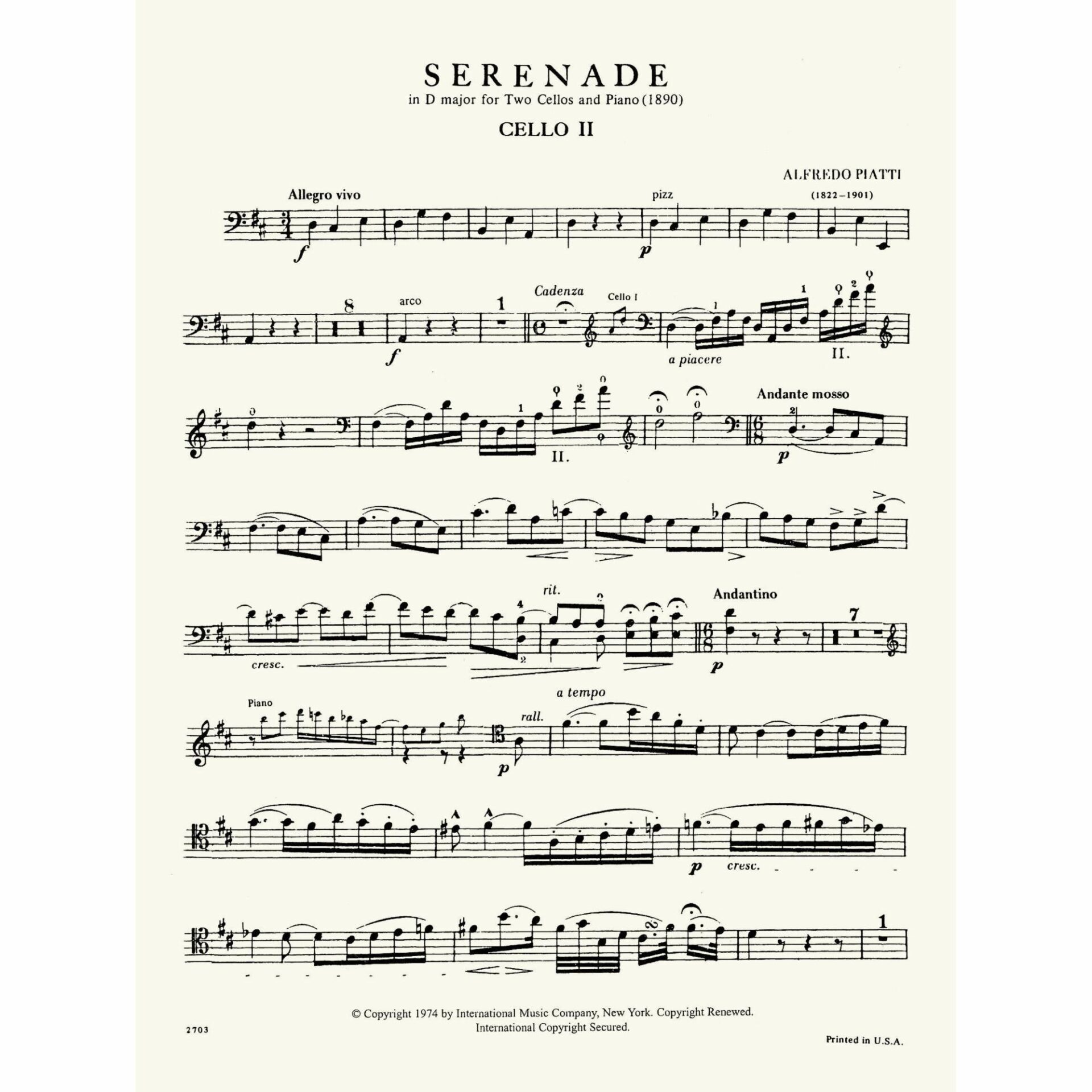 Piatti — Serenade in D Major for Two Cellos and Piano