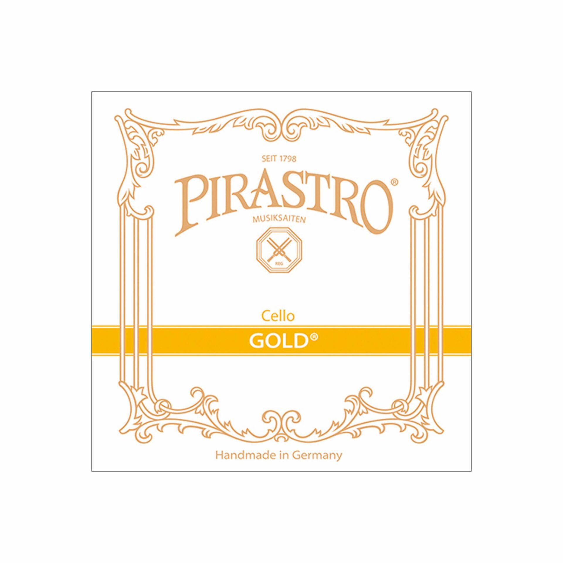 The sheep gut core of the Pirastro Gold strings is manufactured, wound and polished in the traditional way, by hand. They produce a bright gut sound with a quick response. The A and D strings are wound with aluminum, and the G and C strings are wound with silver. The A string has a ball end and the D, G, and C strings have knot ends.