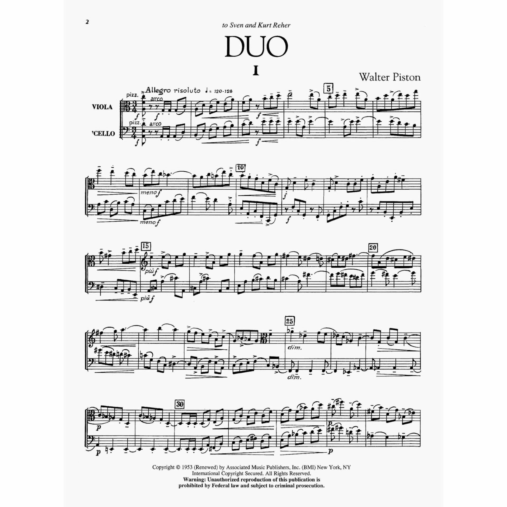 Piston — Duo for Viola and Violoncello