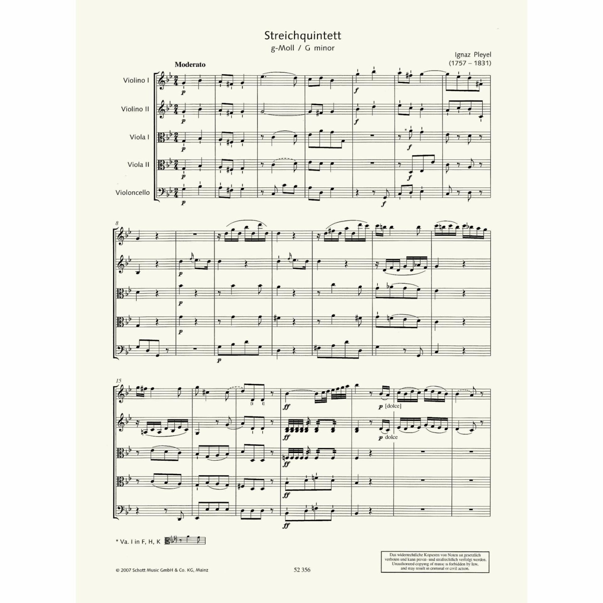 Pleyel — String Quintet in G Minor