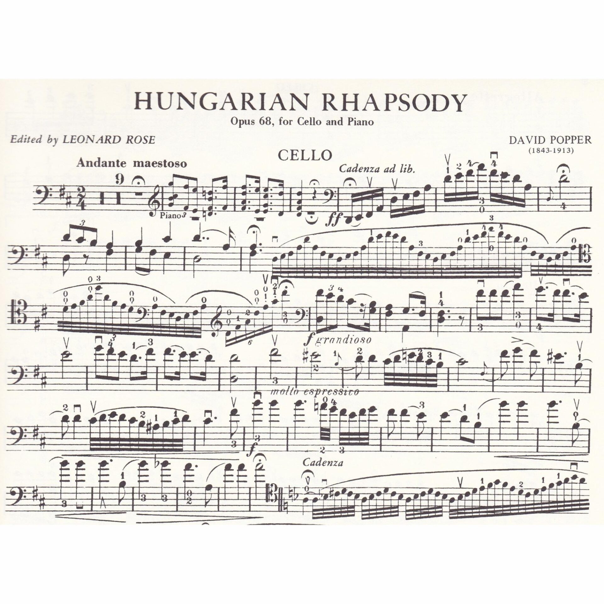 Popper — Hungarian Rhapsody, Op. 68 for Cello and Piano
