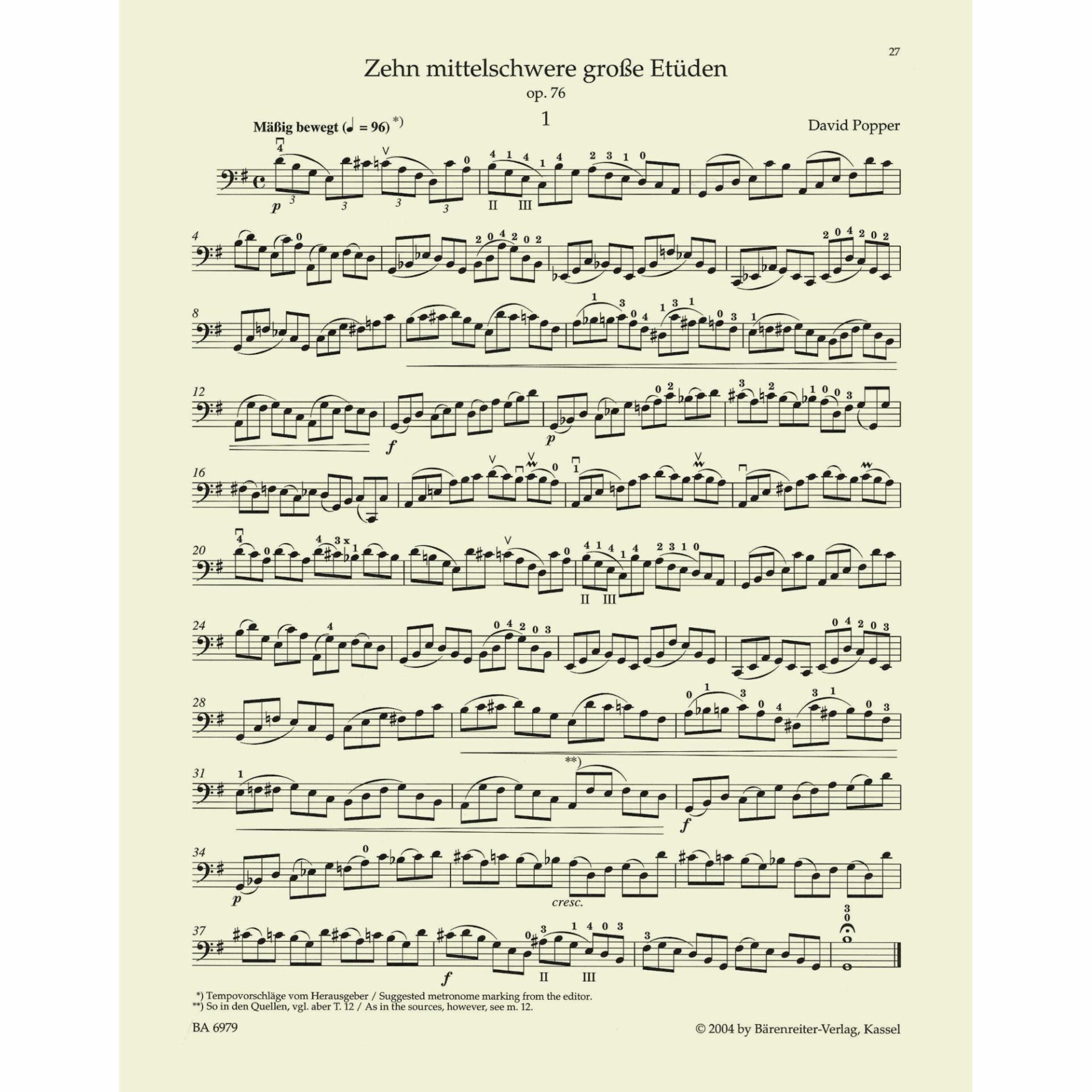 Popper — Ten Grand Etudes of Moderate Difficulty, Op. 76 for Cello
