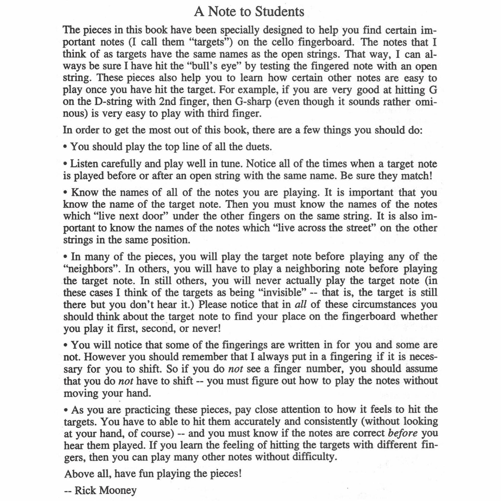 Instrumentation: Cello.  Many songs for two cellos (student and teacher.)