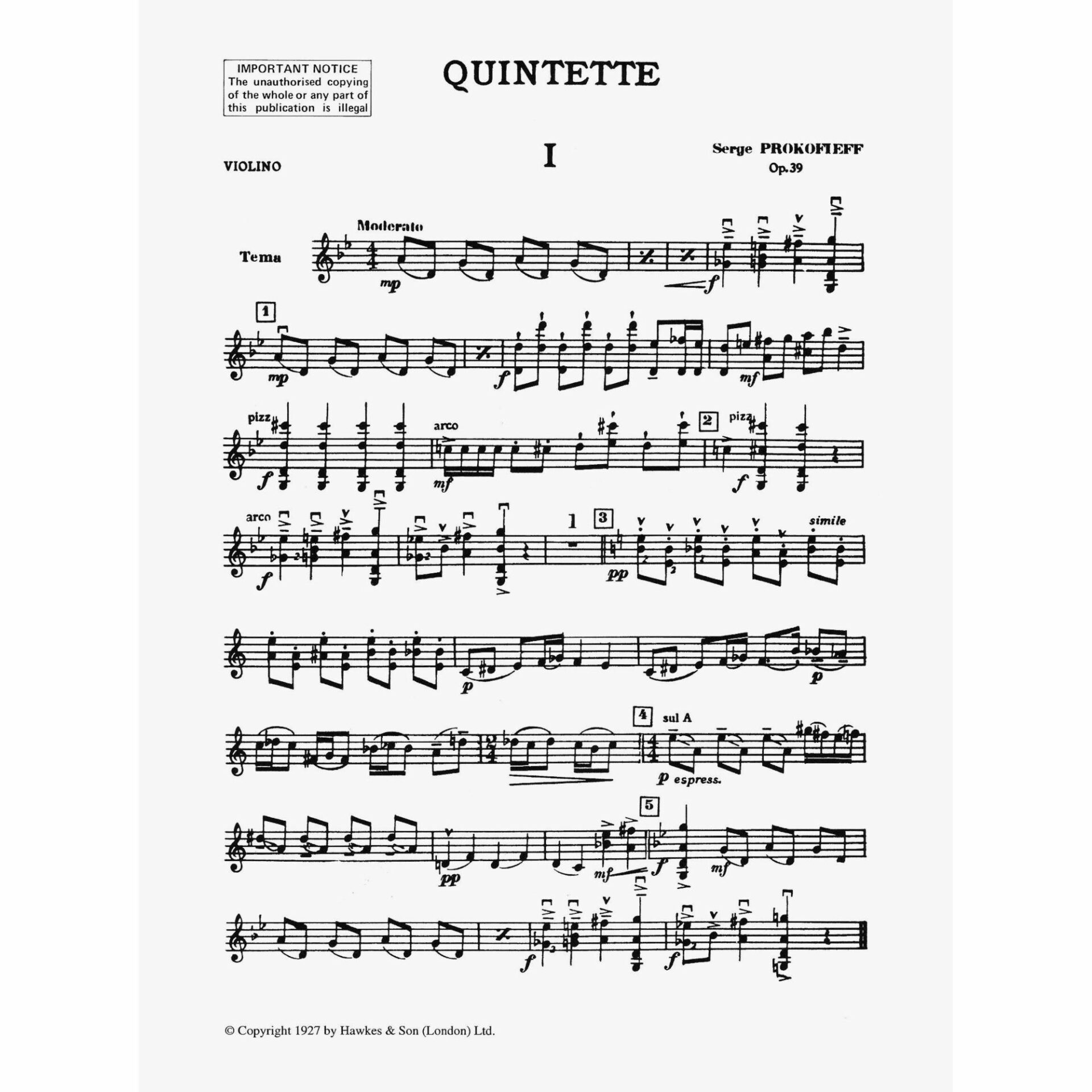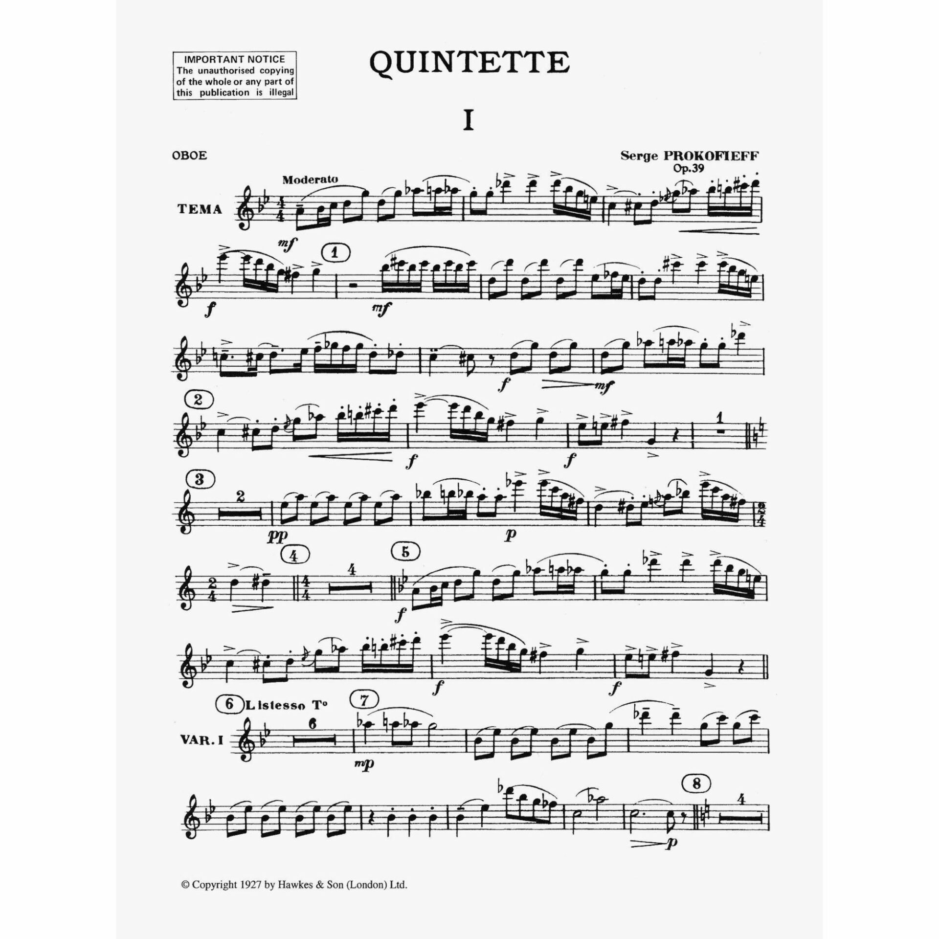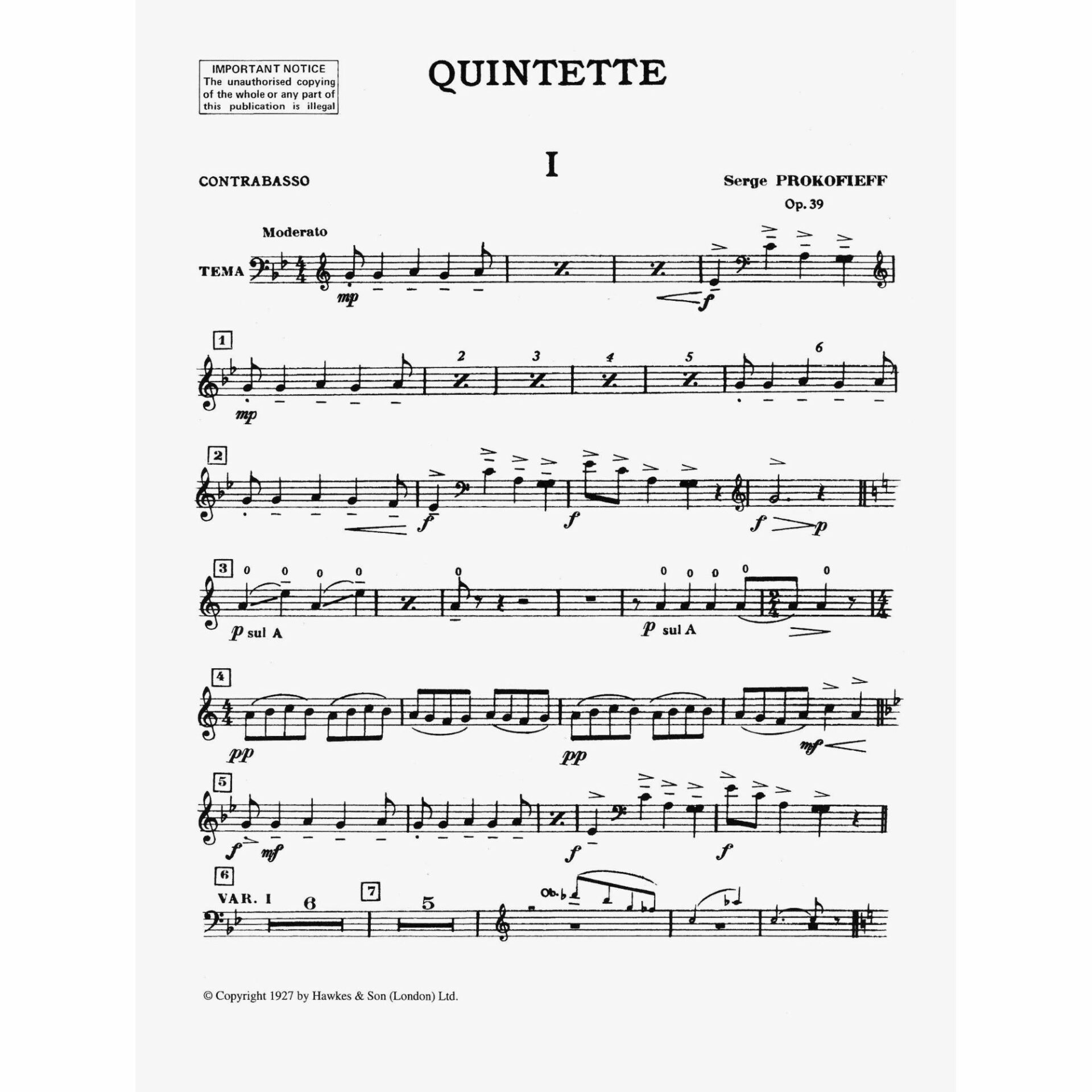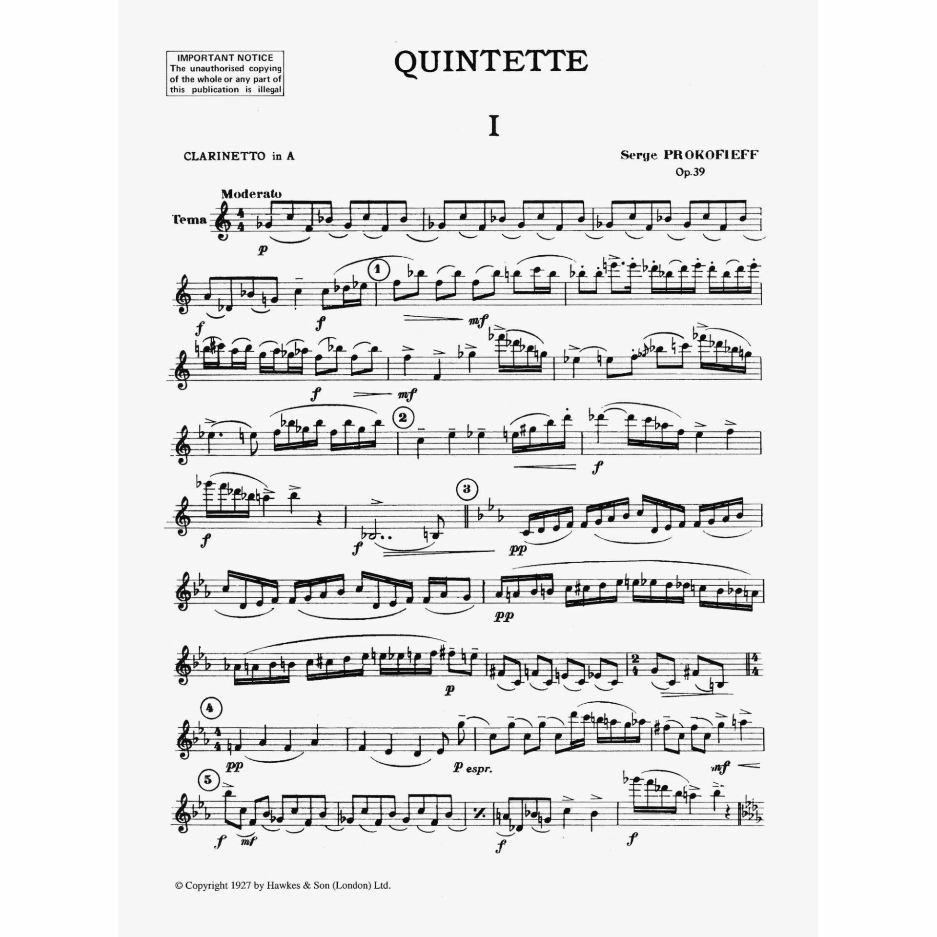 Prokofiev — Quintet, Op. 39 for Oboe, Clarinet, Violin, Viola, and Bass