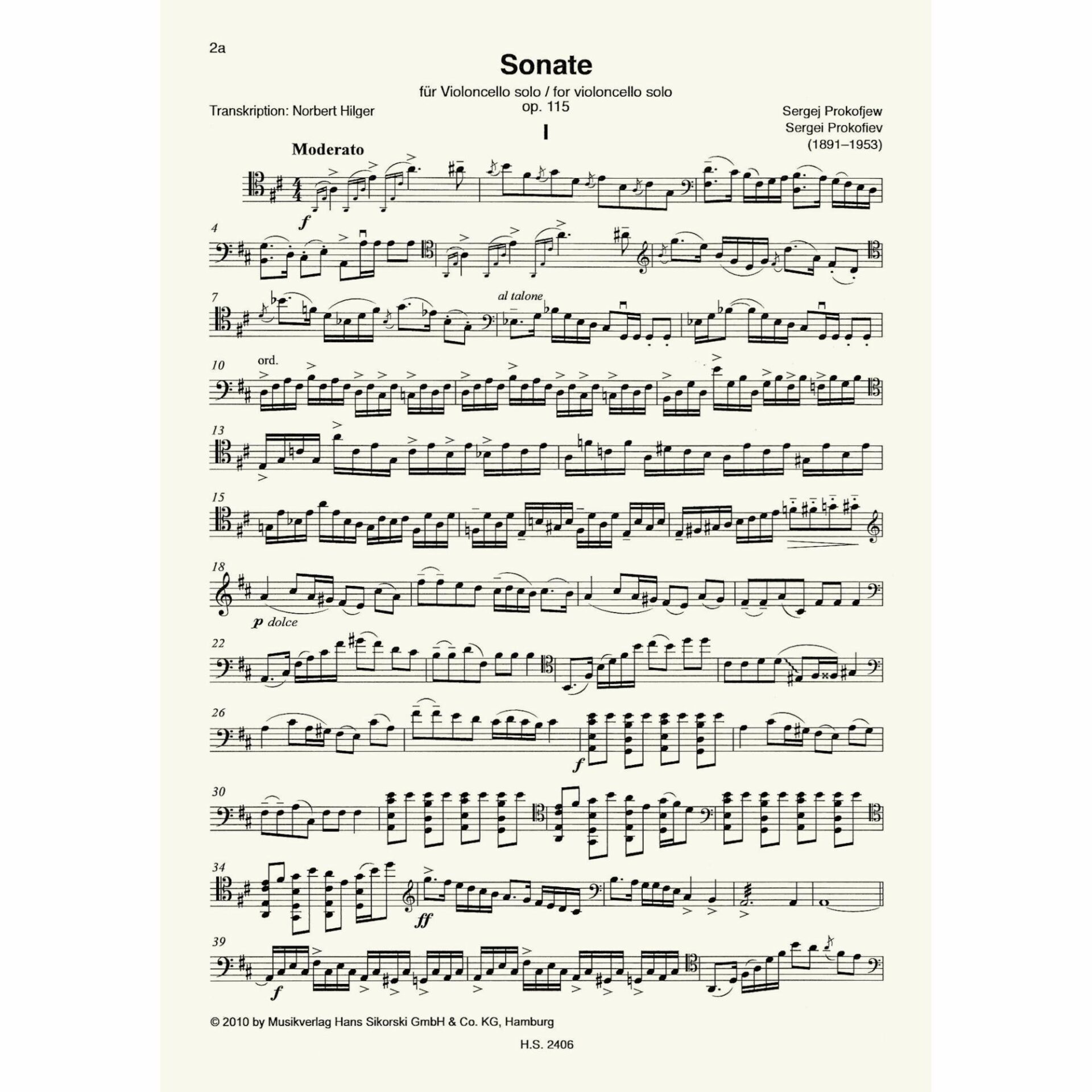 Prokofiev — Sonata, Op. 115 for Solo Cello