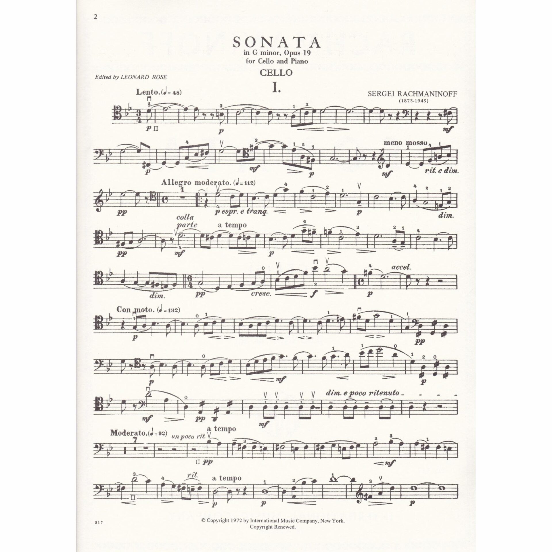 Rachmaninoff — Sonata in G Minor, Op. 19 for Cello and Piano