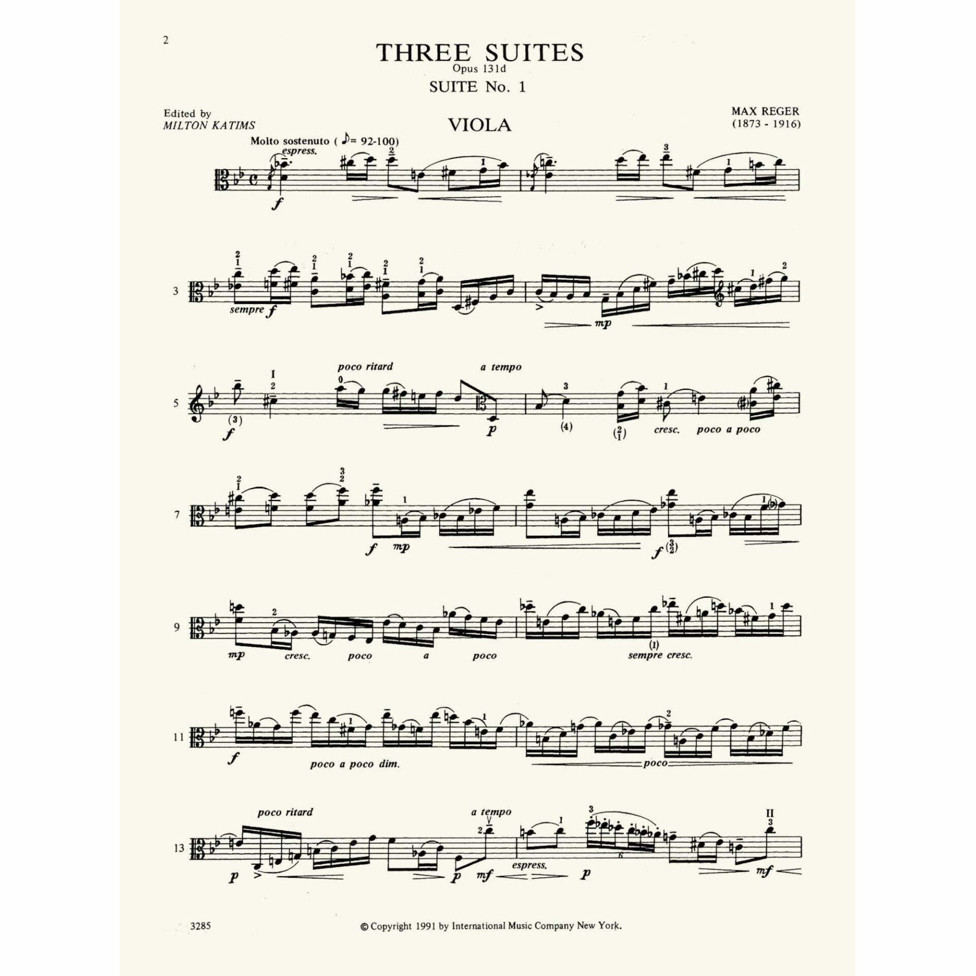 Reger — Three Suites, Op. 131d for Solo Viola