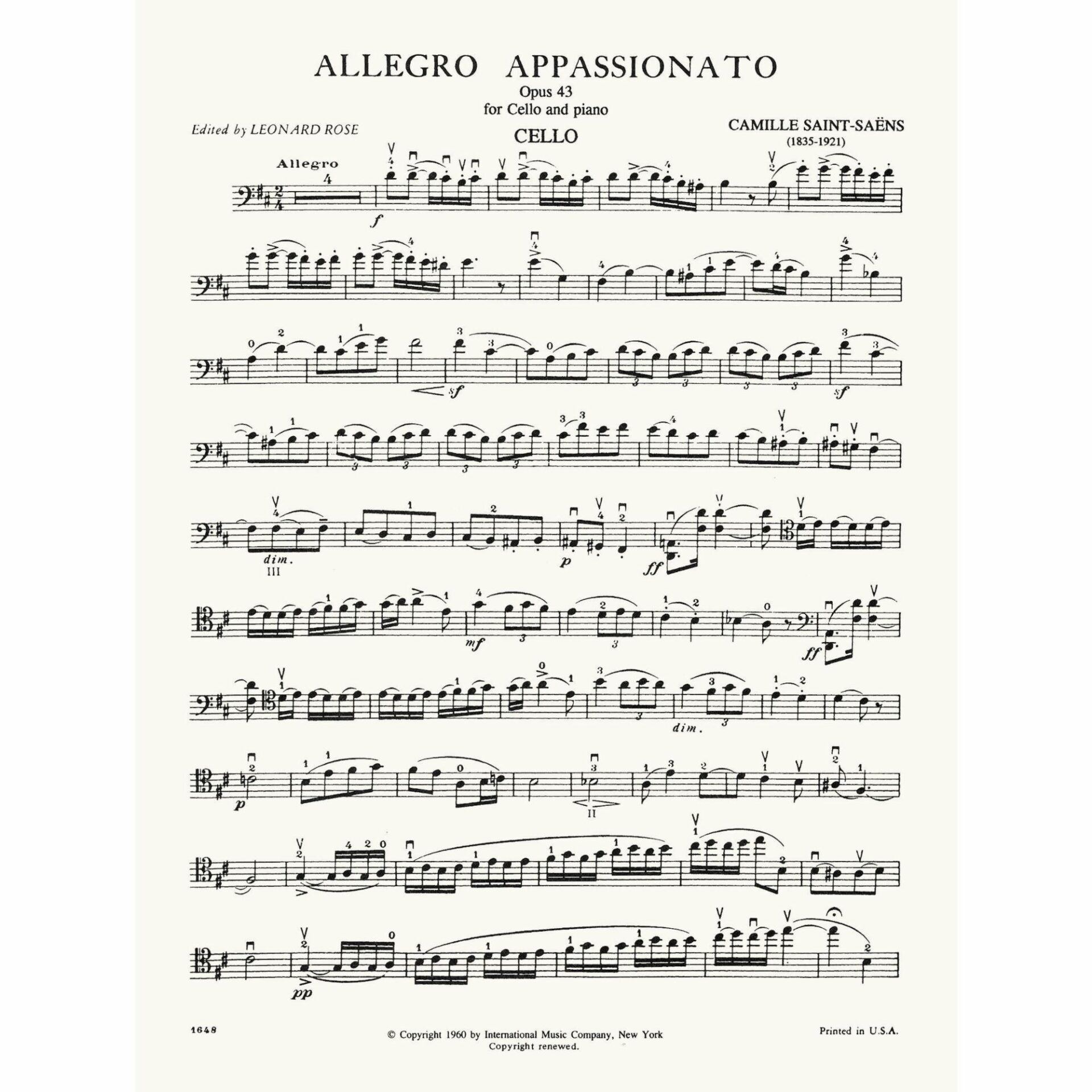 Saint-Saens — Allegro Appassionato, Op. 43 for Cello and Piano