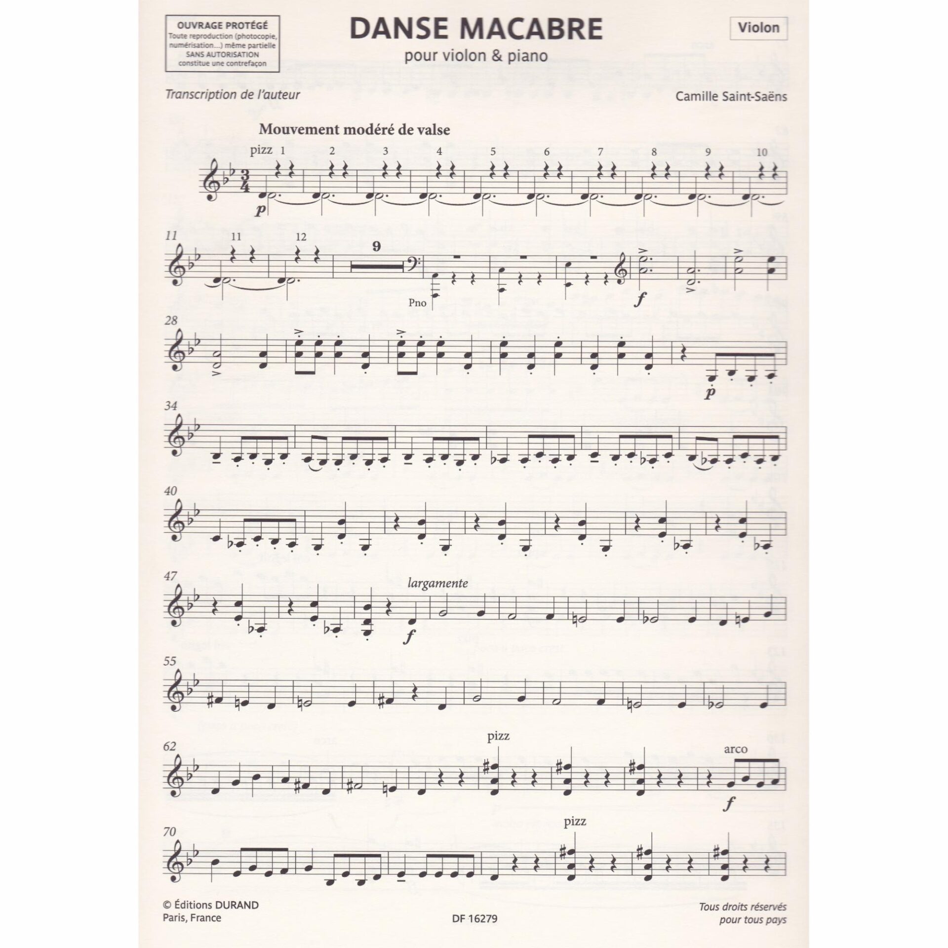 Saint-Saens — Danse Macabre, Op. 40 for Violin or Cello and Piano