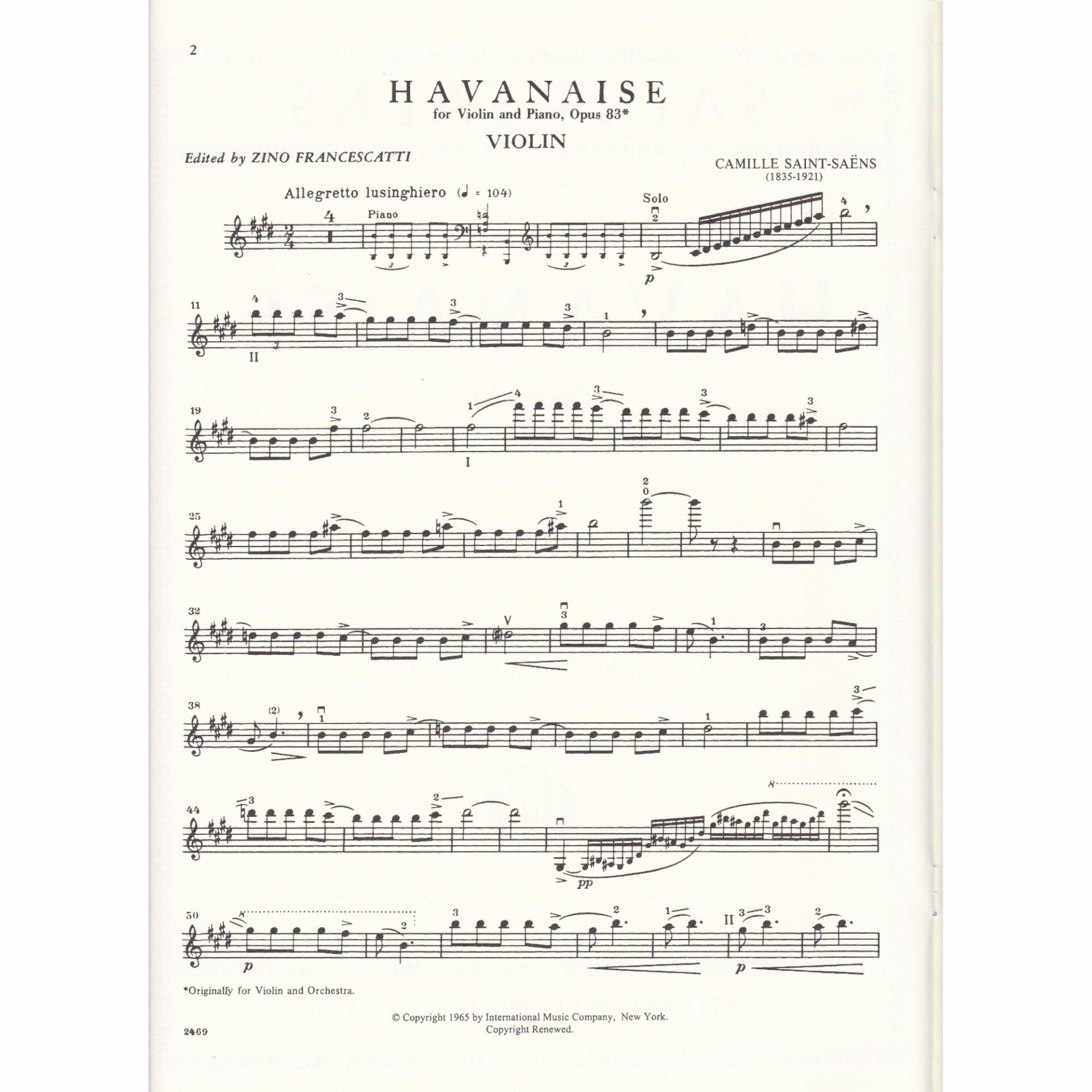 Title: Havanaise, Op. 83