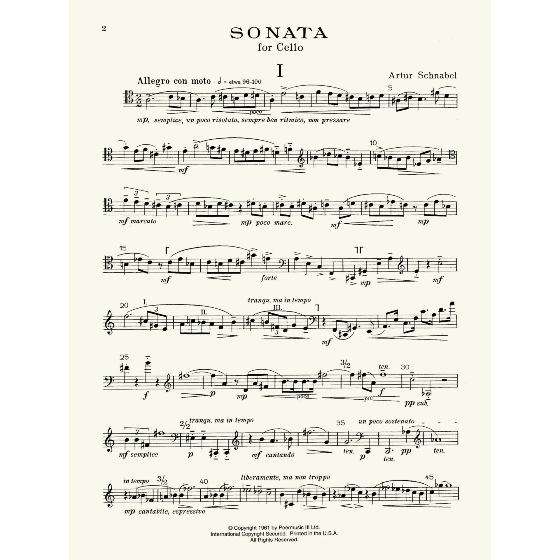 Schnabel — Sonata for Solo Cello