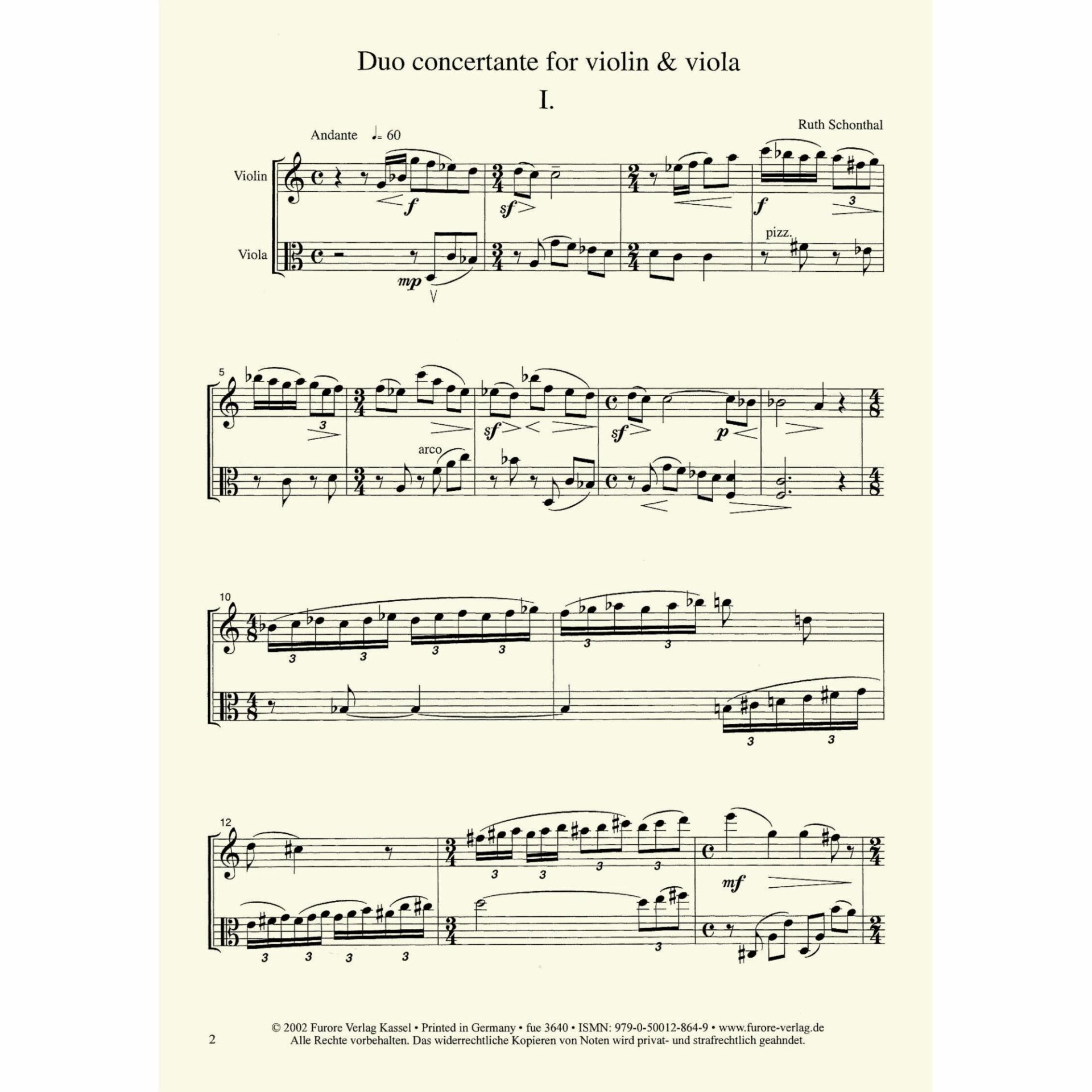 Schonthal — Two Duets, from Divertimenti for Strings for Violin and Viola